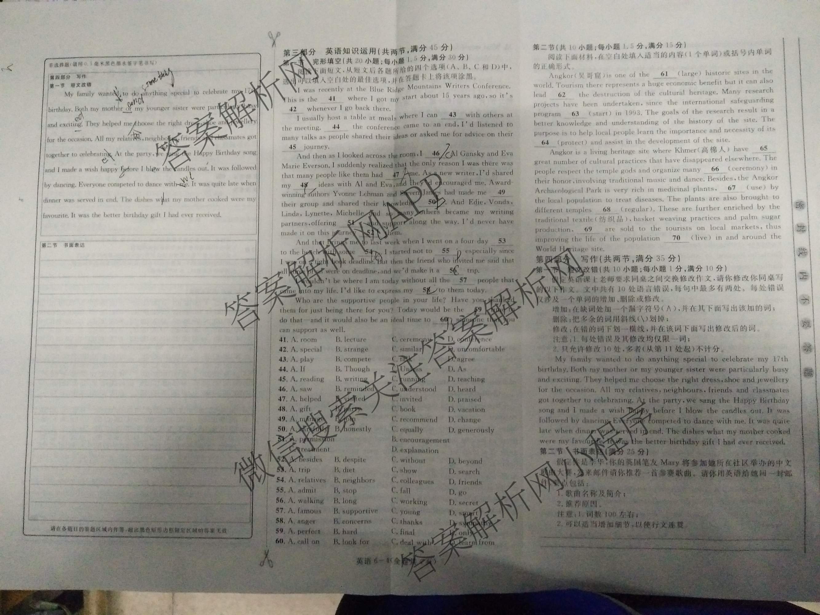 2021年高考单科综合题型卷(全国卷)六英语试题,目前分科卷答案网已经汇总了2021年高考单科综合题型卷(全国卷)六英语试题的各科答案和试卷,获取更多高考单科综合题型卷答案解析,请在关注本站。