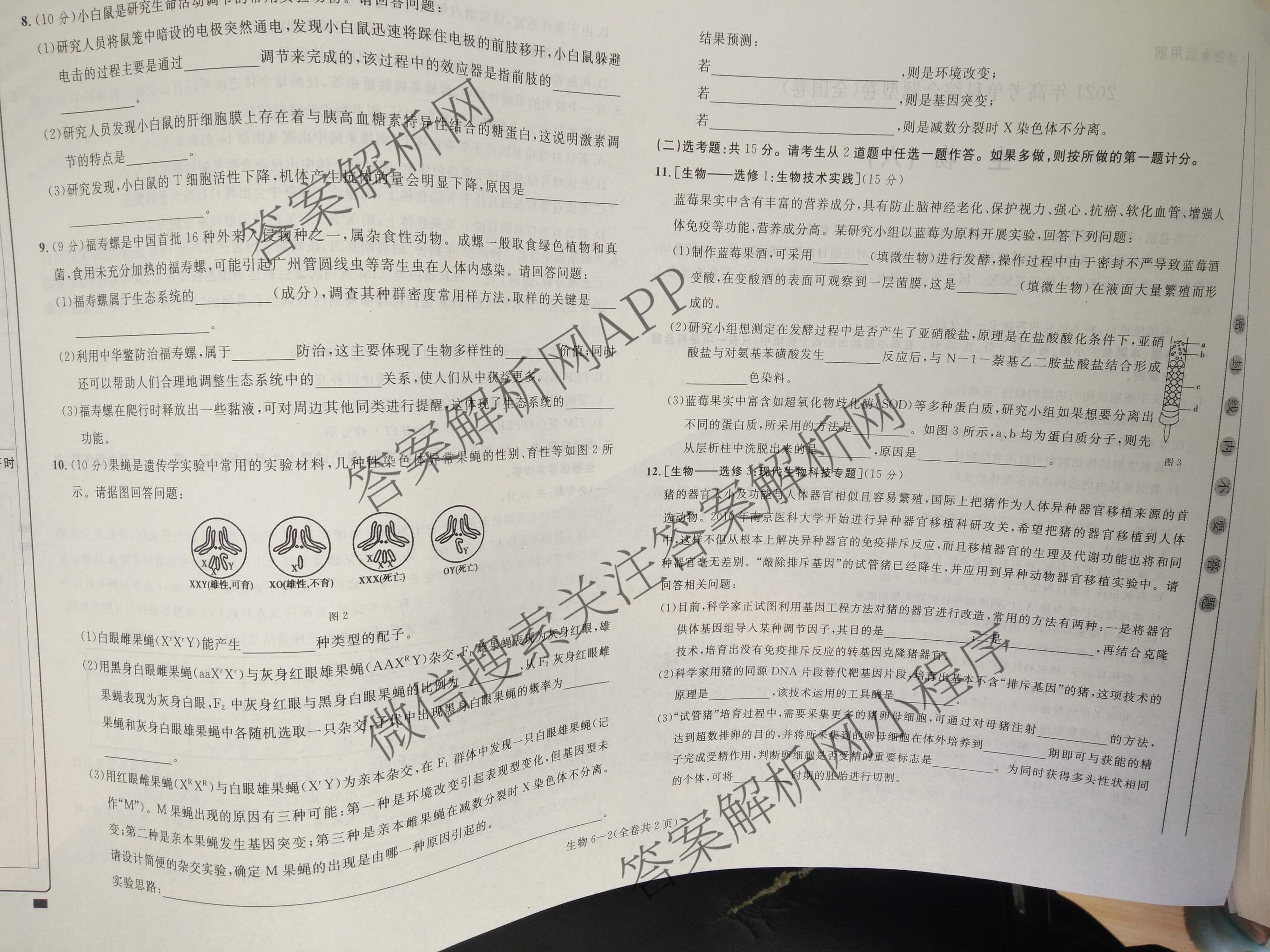 2021年高考单科综合题型卷(全国卷)六生物试题,目前分科卷答案网已经汇总了2021年高考单科综合题型卷(全国卷)六生物试题的各科答案和试卷,获取更多高考单科综合题型卷答案解析,请在关注本站。