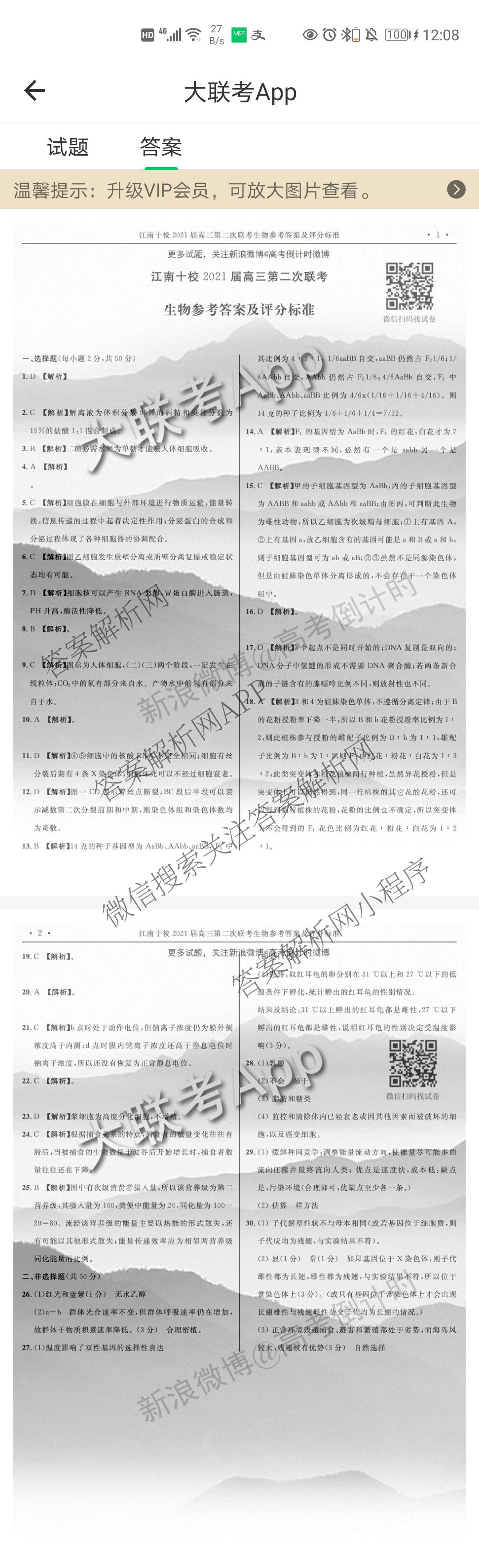 江南十校2021届高三第二次联考生物答案,目前分科卷答案网已经汇总了江南十校2021届高三第二次联考生物答案的各科答案和试卷,获取更多江南十校答案解析,请在关注本站。