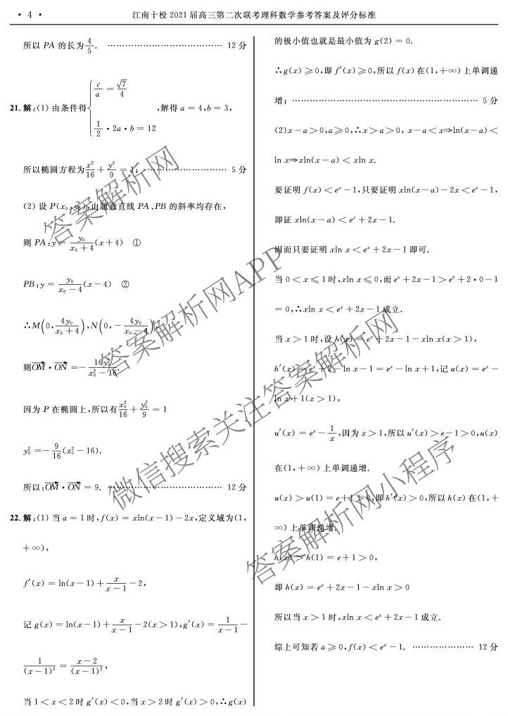 江南十校2021届高三第二次联考理科数学答案,目前分科卷答案网已经汇总了江南十校2021届高三第二次联考理科数学答案的各科答案和试卷,获取更多江南十校答案解析,请在关注本站。