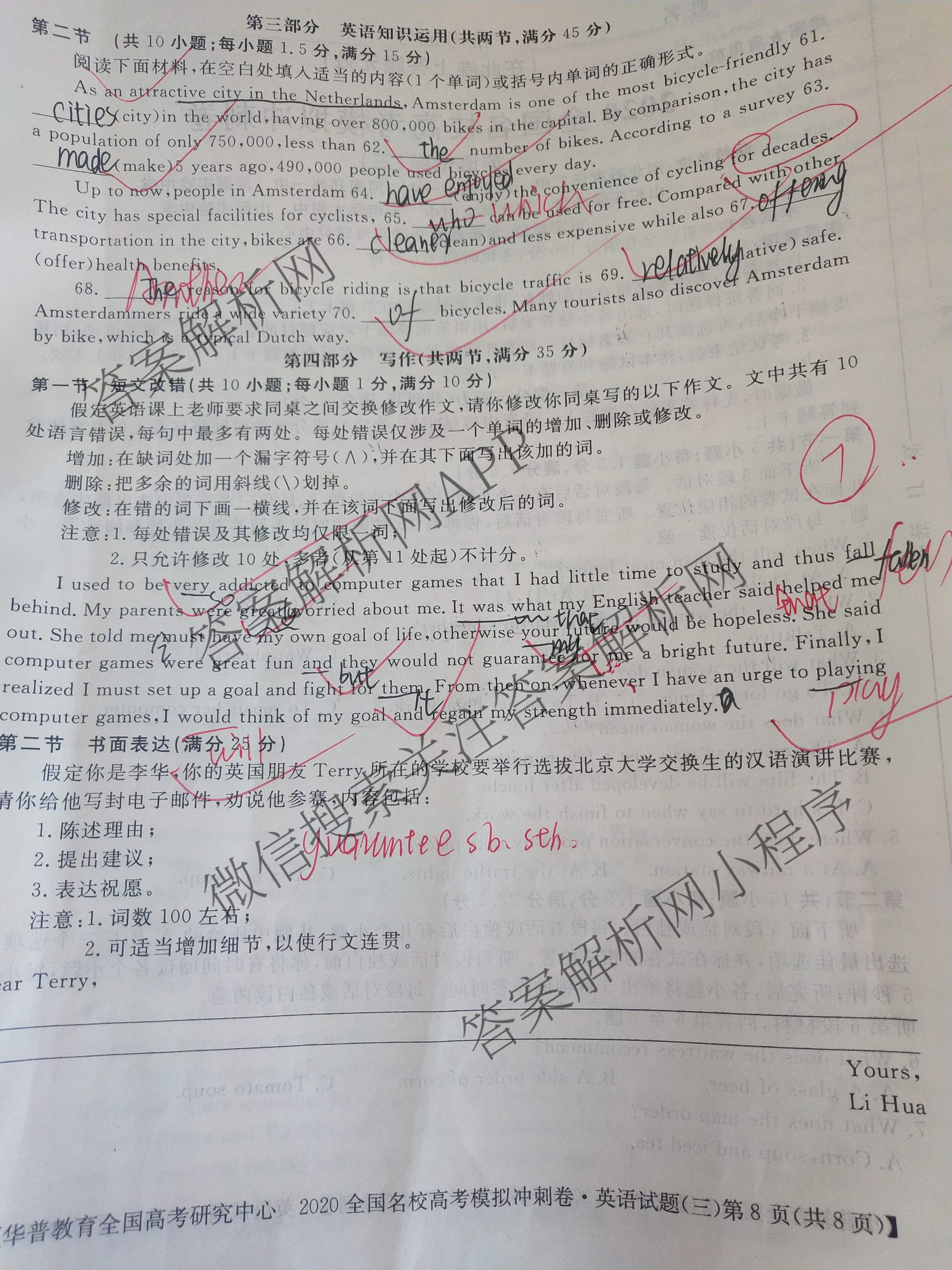 - [华普教育]2020全国名校高考模拟冲刺卷(三)英语答案
