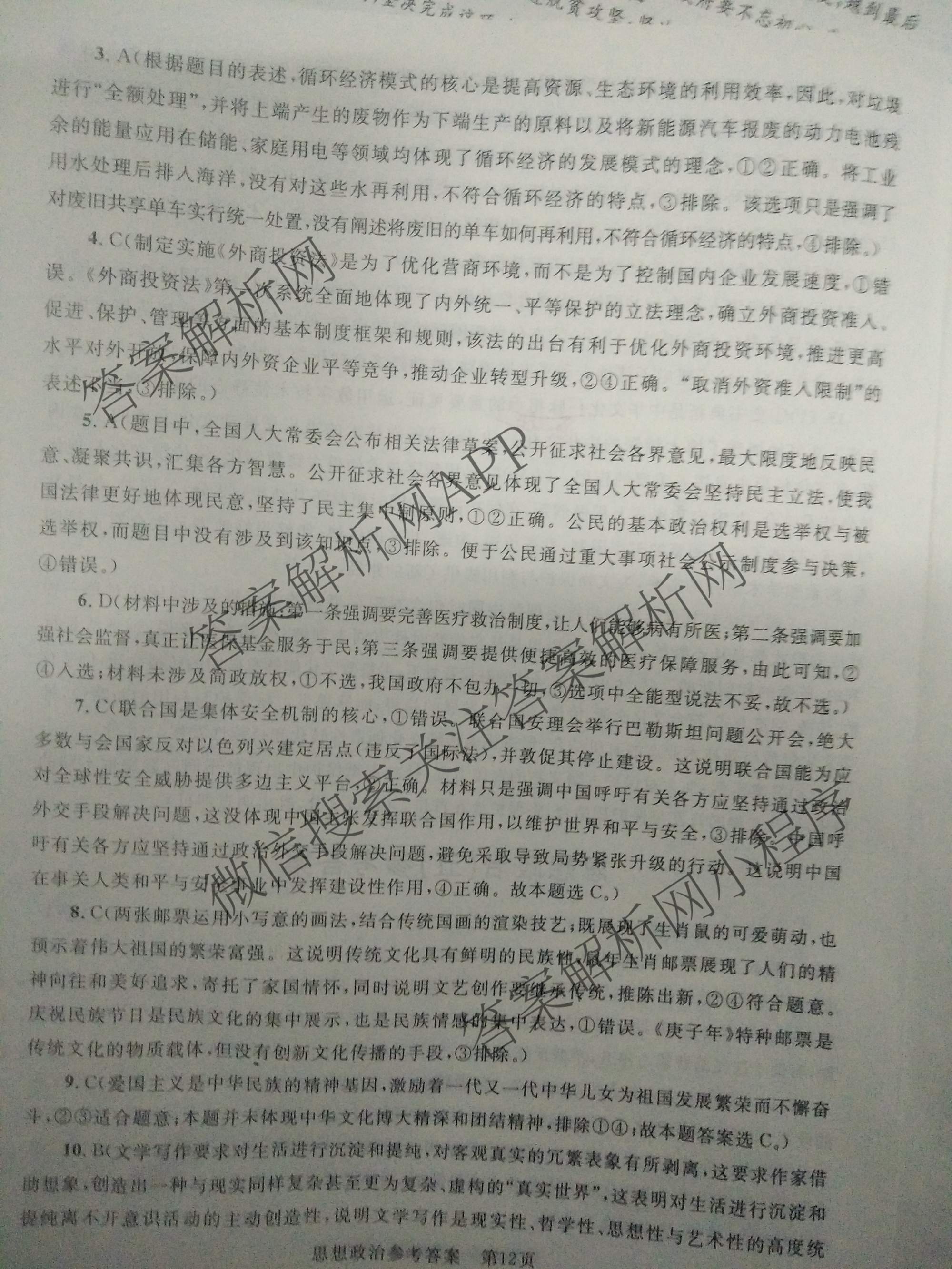 2021年高考单科综合题型卷(全国卷)五政治答案