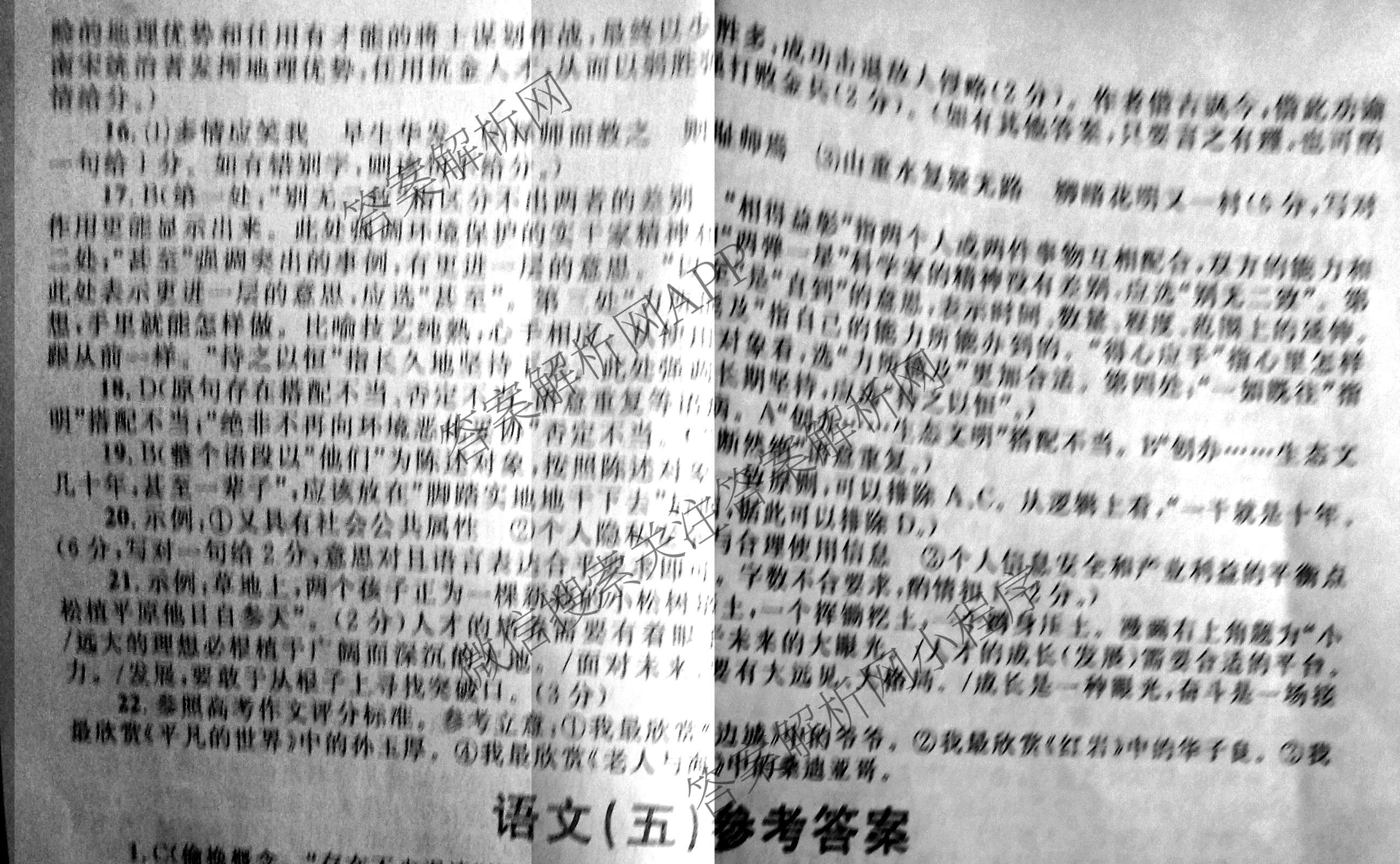 2021年高考单科综合题型卷(全国卷)四语文答案