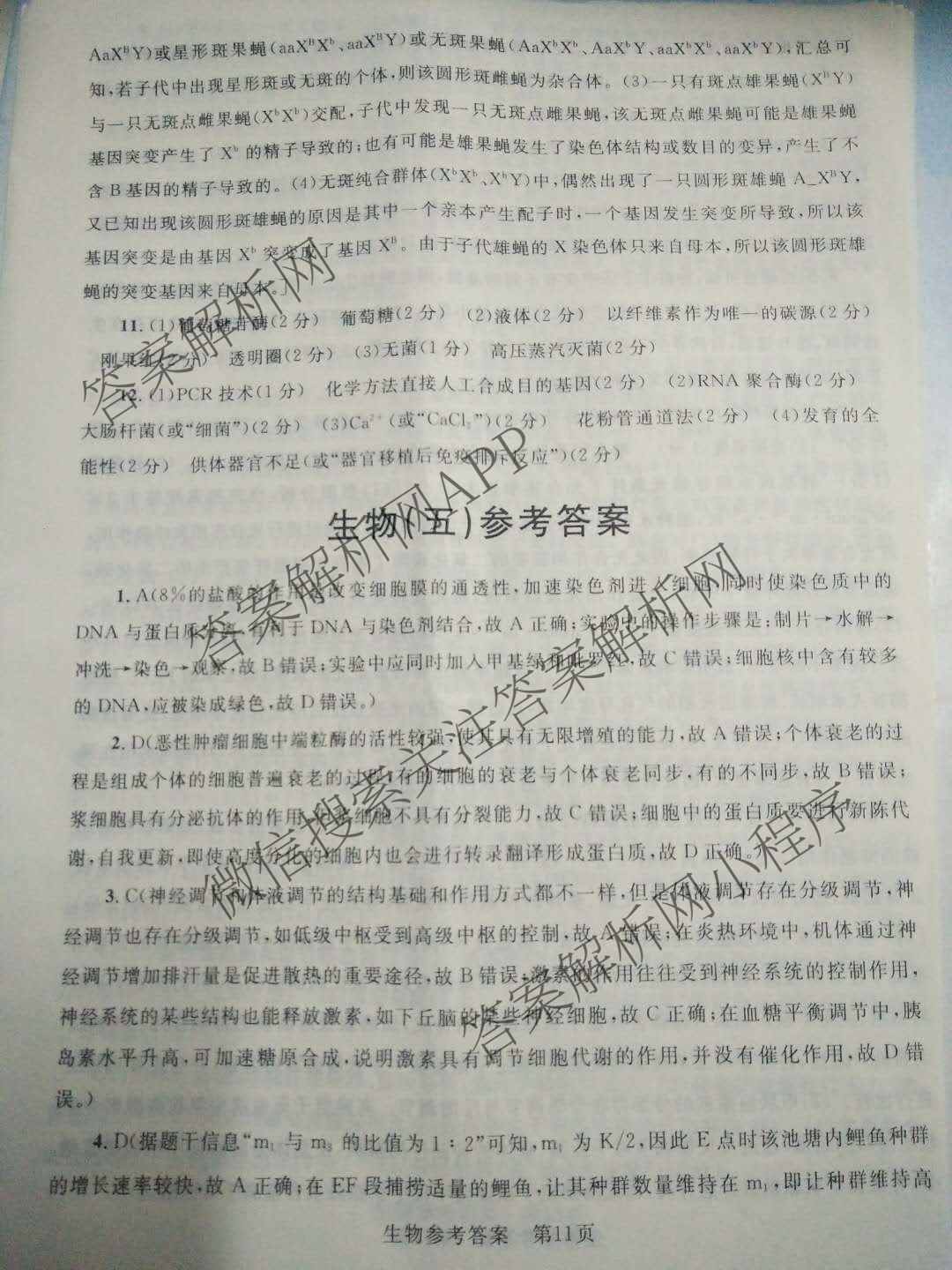 2021年高考单科综合题型卷(全国卷)四生物答案