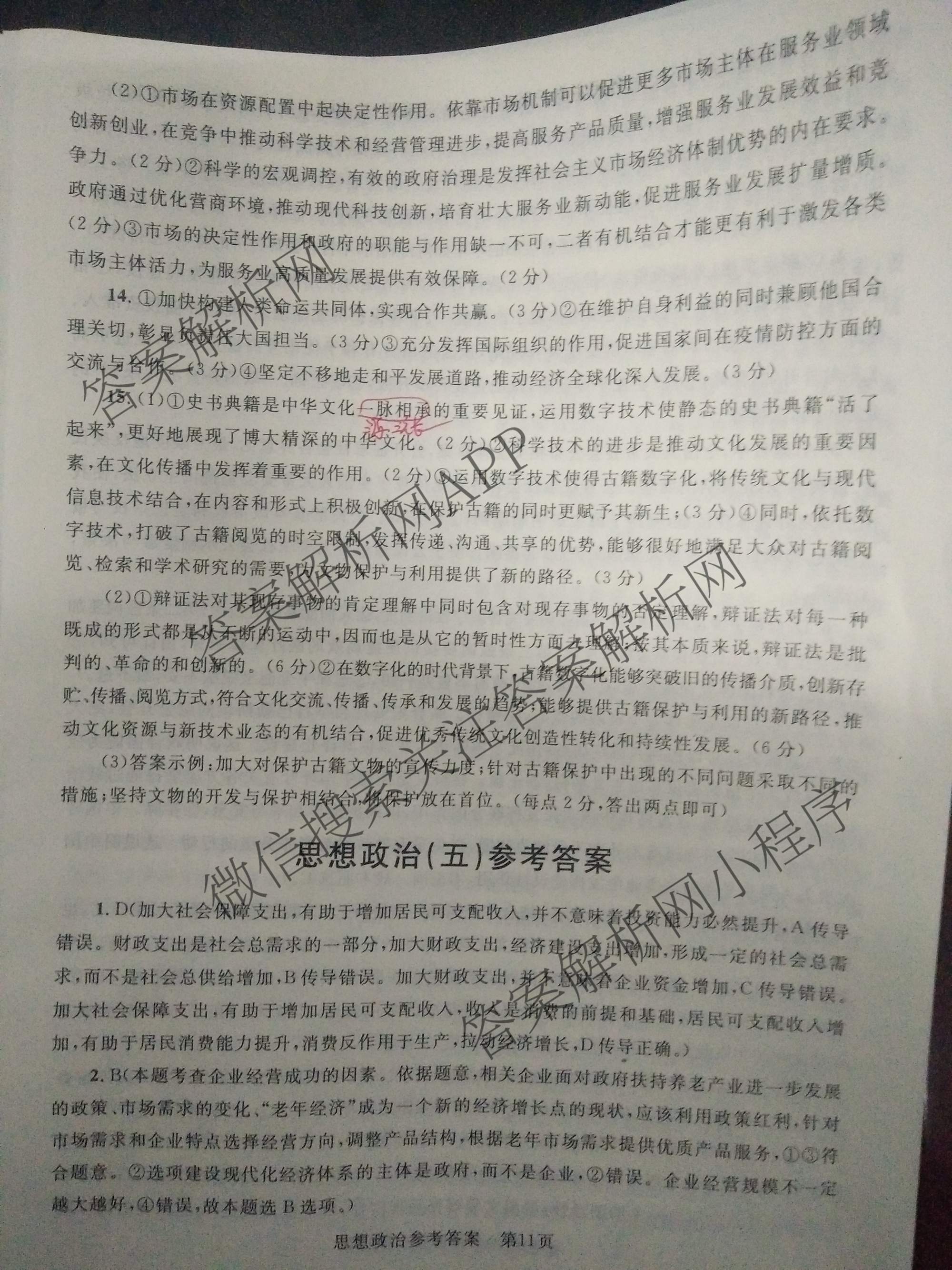 2021年高考单科综合题型卷(全国卷)四政治答案