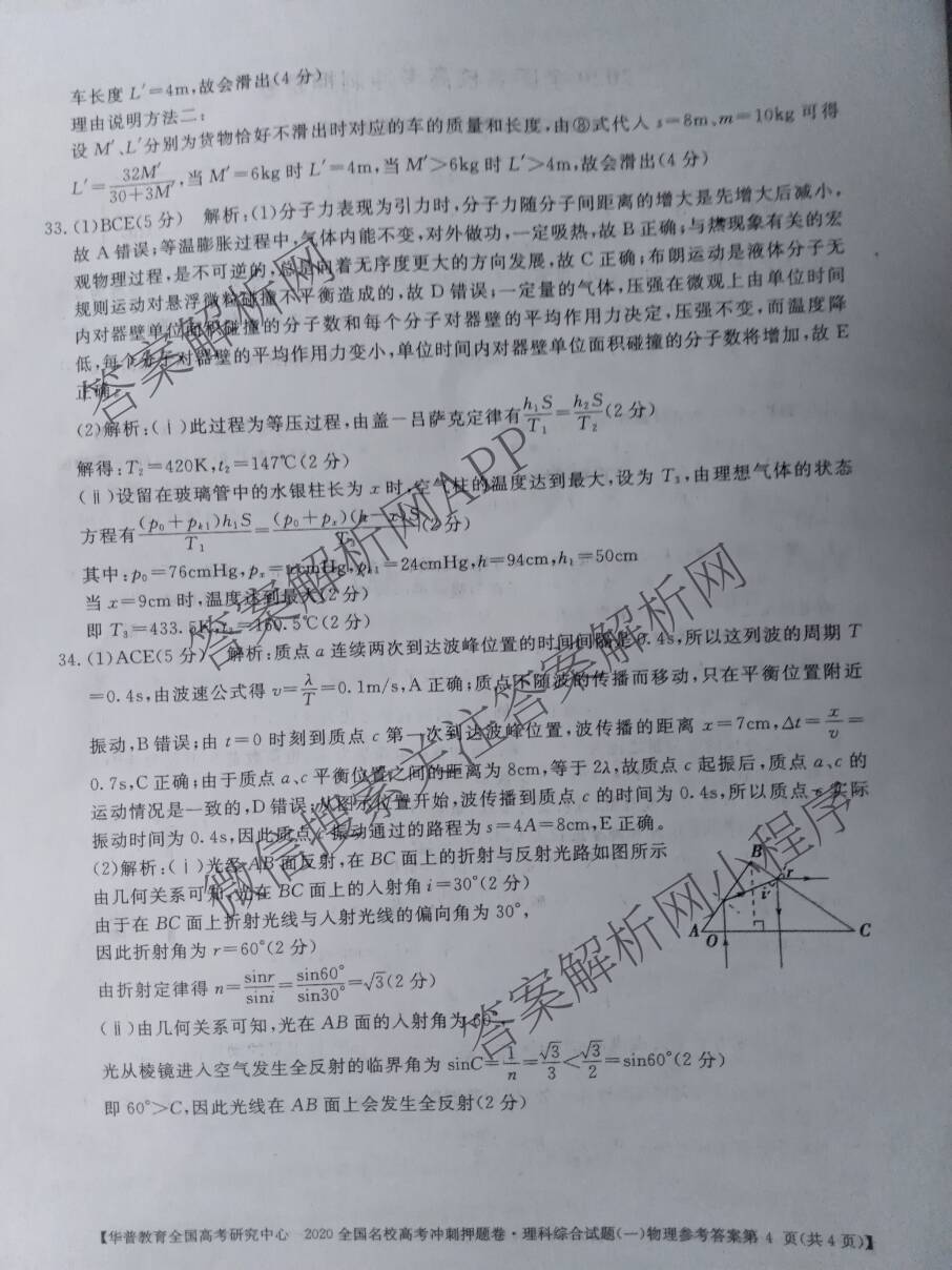 - [华普教育]·2020全国名校高考冲刺押题卷(一)理科综合答案