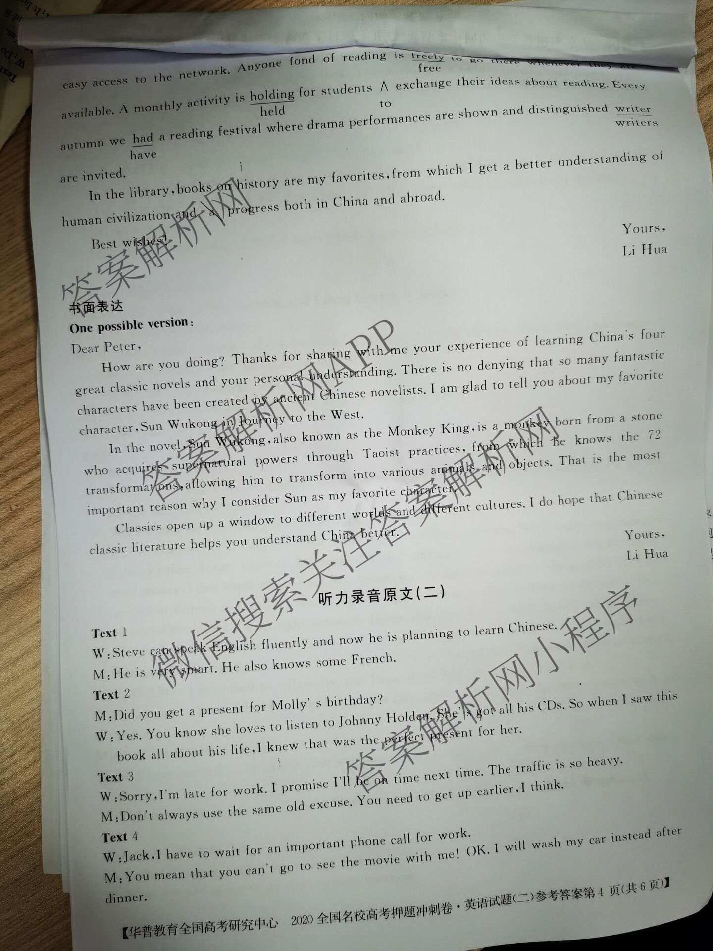 - (华普教育)·2020全国名校高考冲刺押题卷(二)英语答案