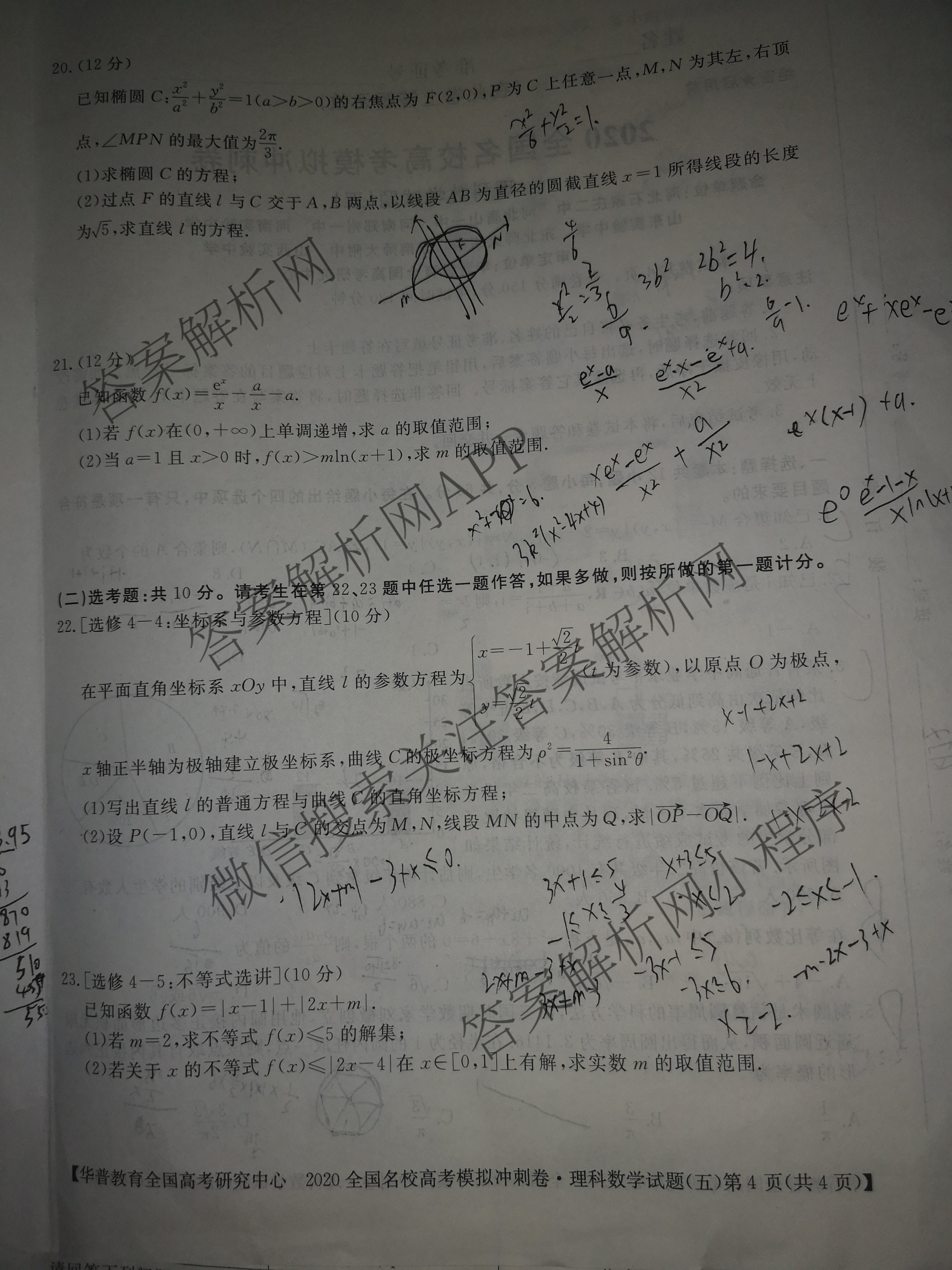 - (华普教育)2020全国名校高考模拟冲刺卷(五)理科数学试题