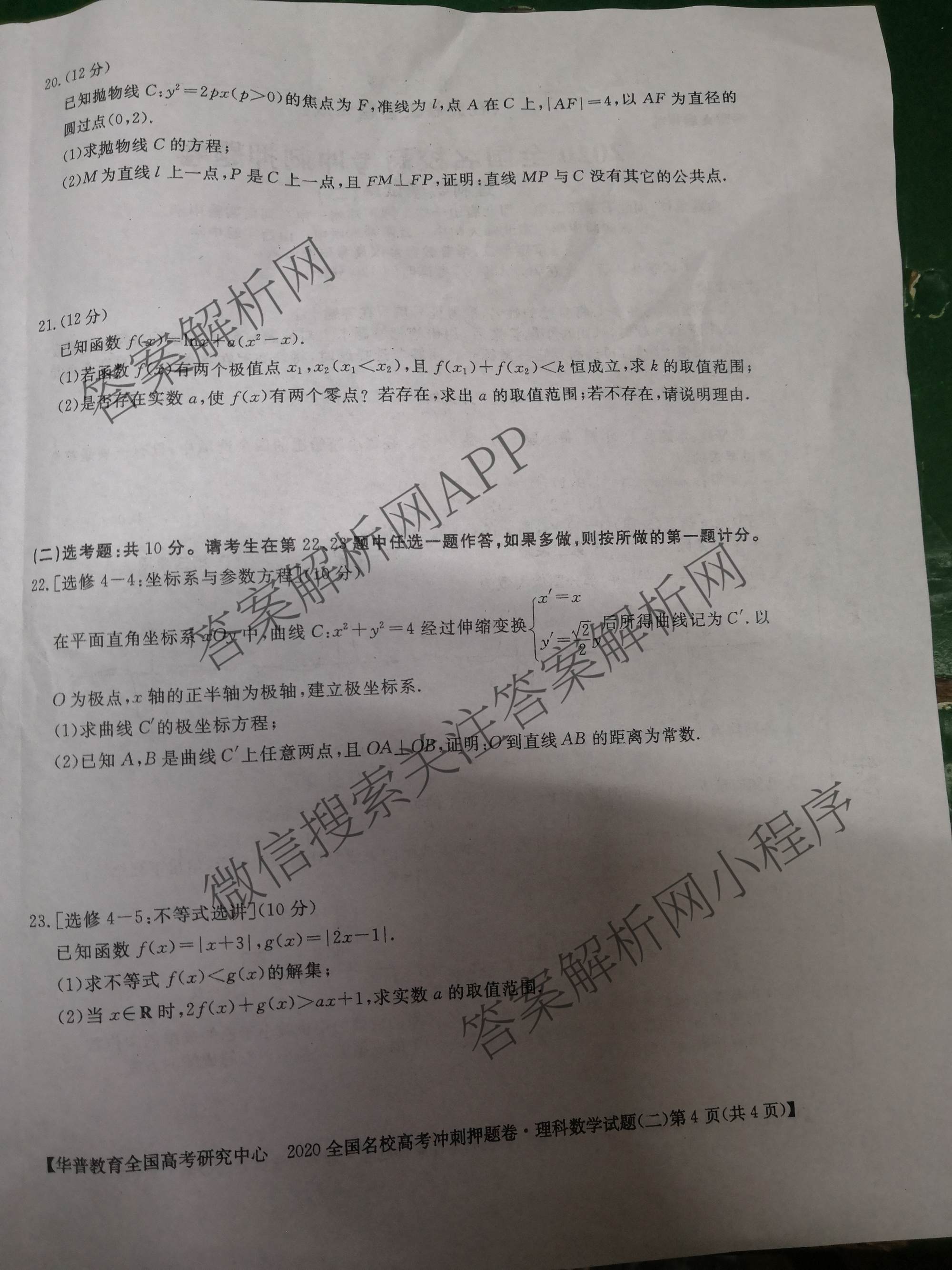 华普教育·2020全国名校高考冲刺押题卷(二)理科数学试题,目前分科卷答案网已经汇总了华普教育·2020全国名校高考冲刺押题卷(二)理科数学试题的各科答案和试卷,获取更多华普教育答案解析,请在关注本站。