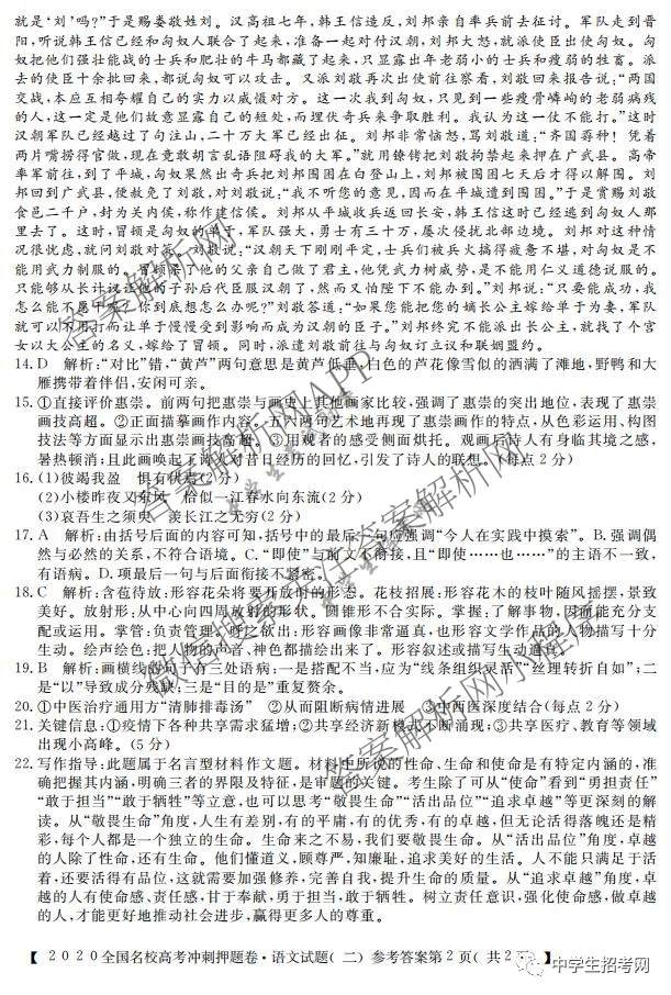 - (华普教育)·2020全国名校高考冲刺押题卷(二)语文答案