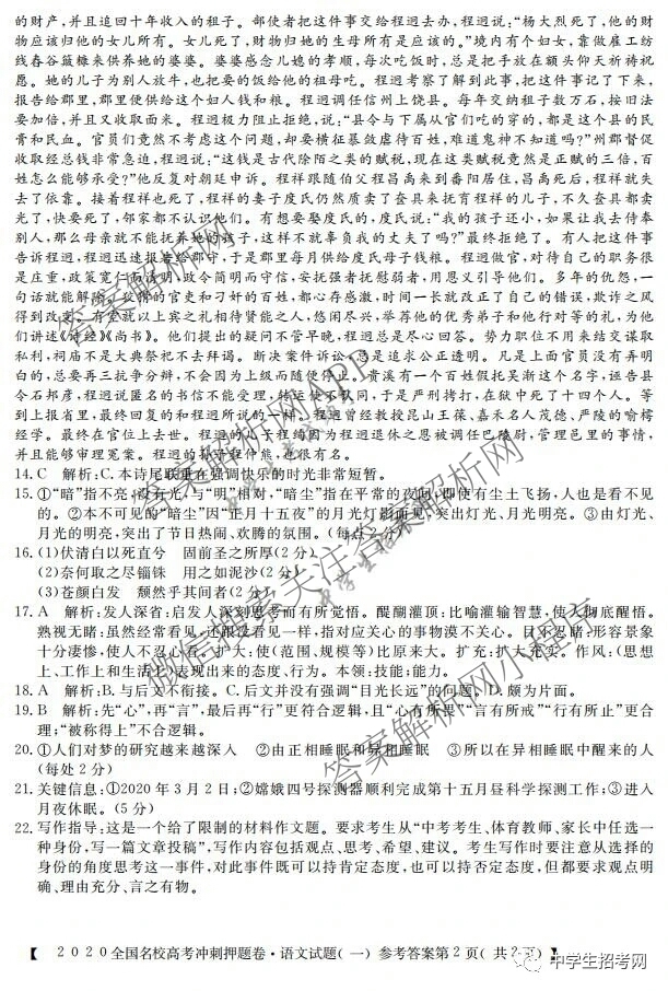 - 华普教育2020全国名校高考冲刺押题卷(一)语文答案