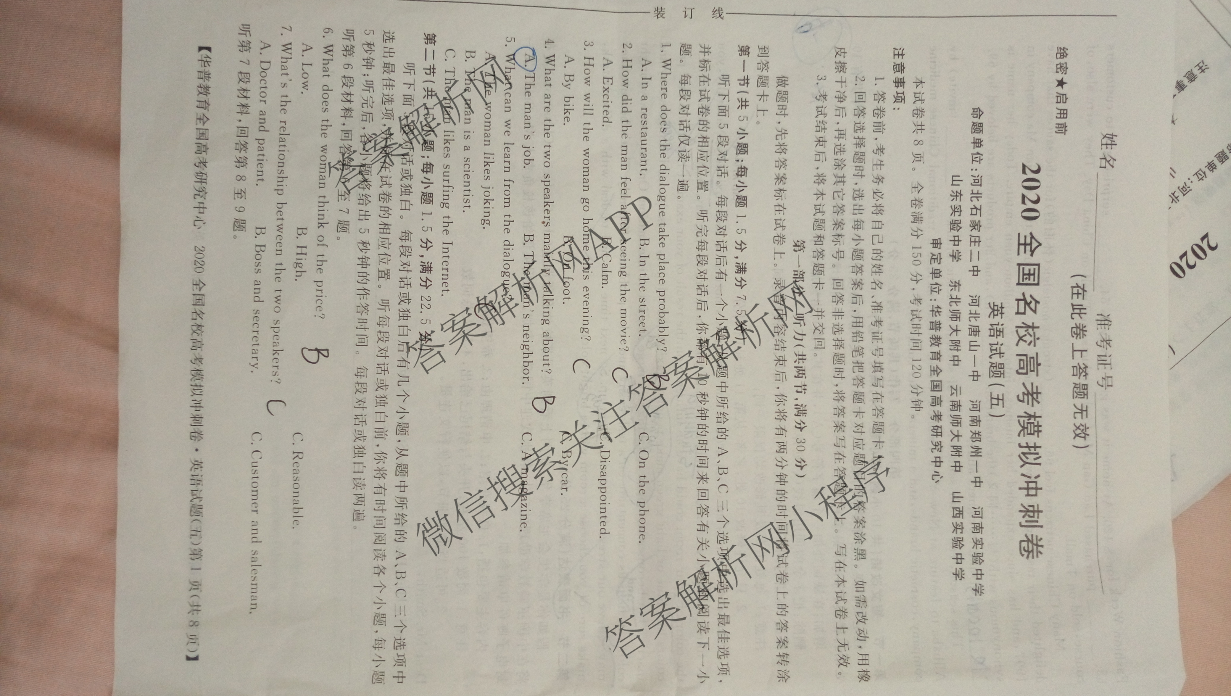 华普教育·2020全国名校高考模拟冲刺卷(五)英语试题,目前分科卷答案网已经汇总了华普教育·2020全国名校高考模拟冲刺卷(五)英语试题的各科答案和试卷,获取更多华普教育答案解析,请在关注本站。