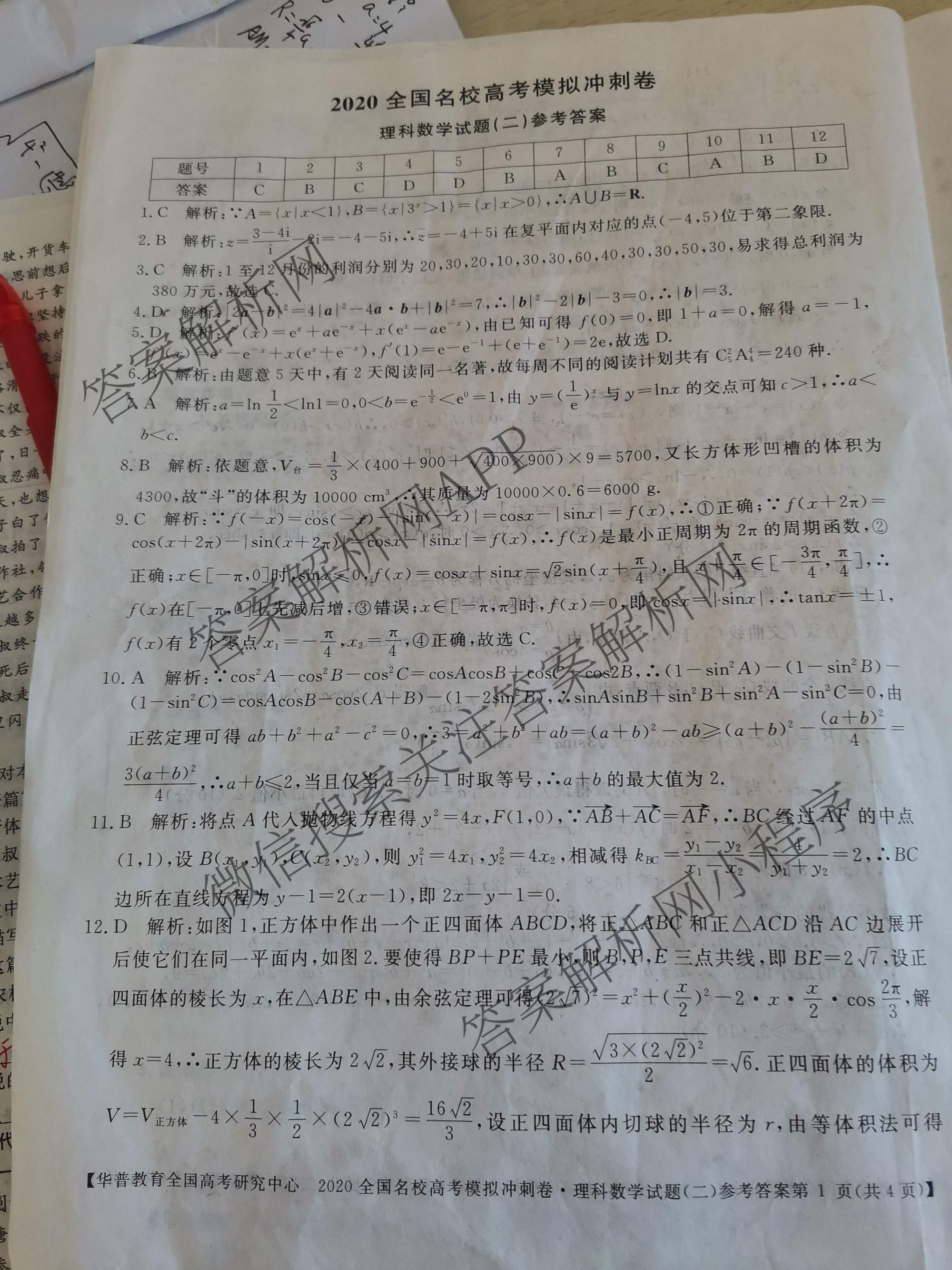 - [华普教育]2020全国名校高考模拟冲刺卷(二)理科数学答案