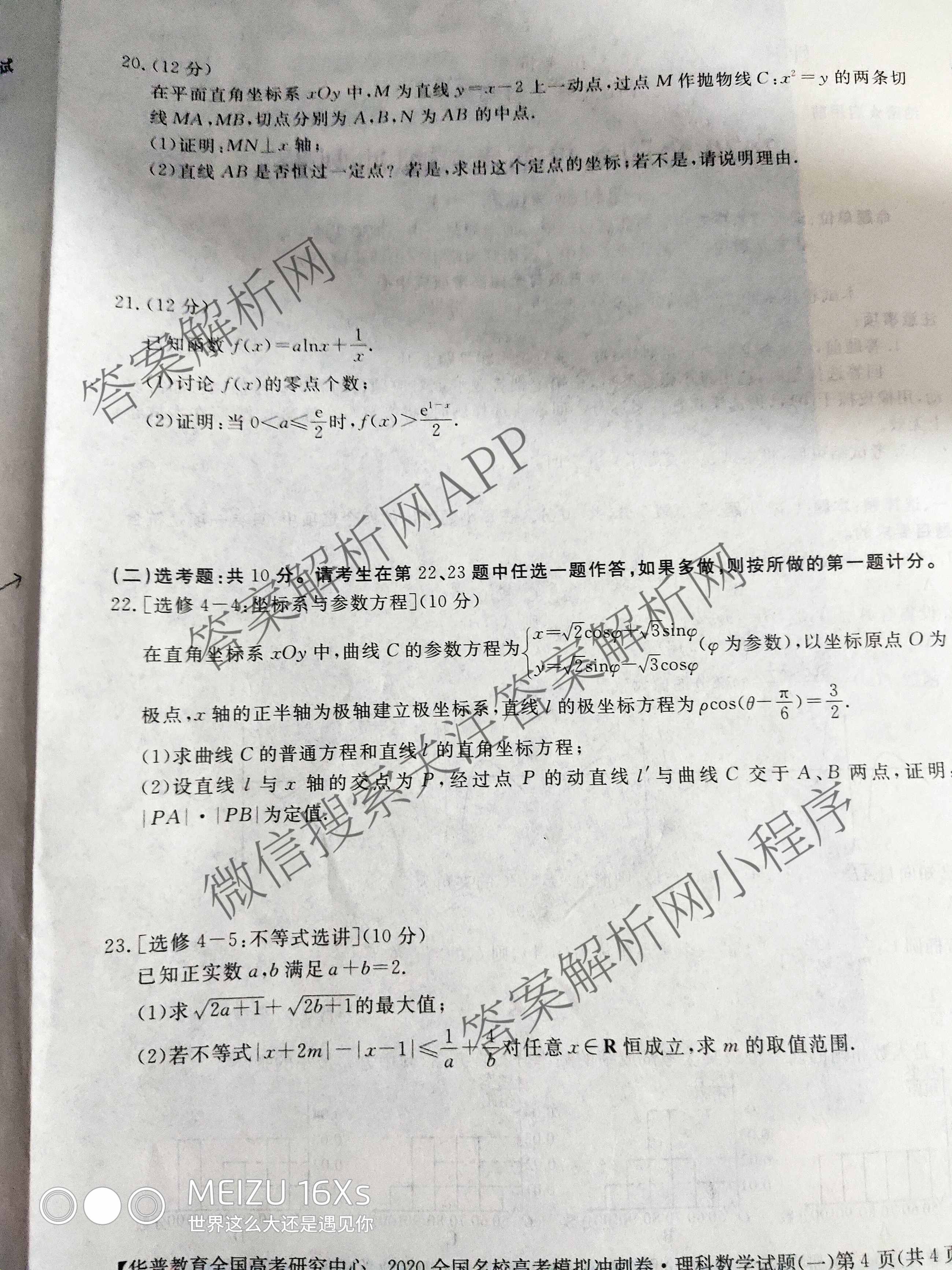 华普教育·2020全国名校高考模拟冲刺卷(一)理科数学试题,目前分科卷答案网已经汇总了华普教育·2020全国名校高考模拟冲刺卷(一)理科数学试题的各科答案和试卷,获取更多华普教育答案解析,请在关注本站。