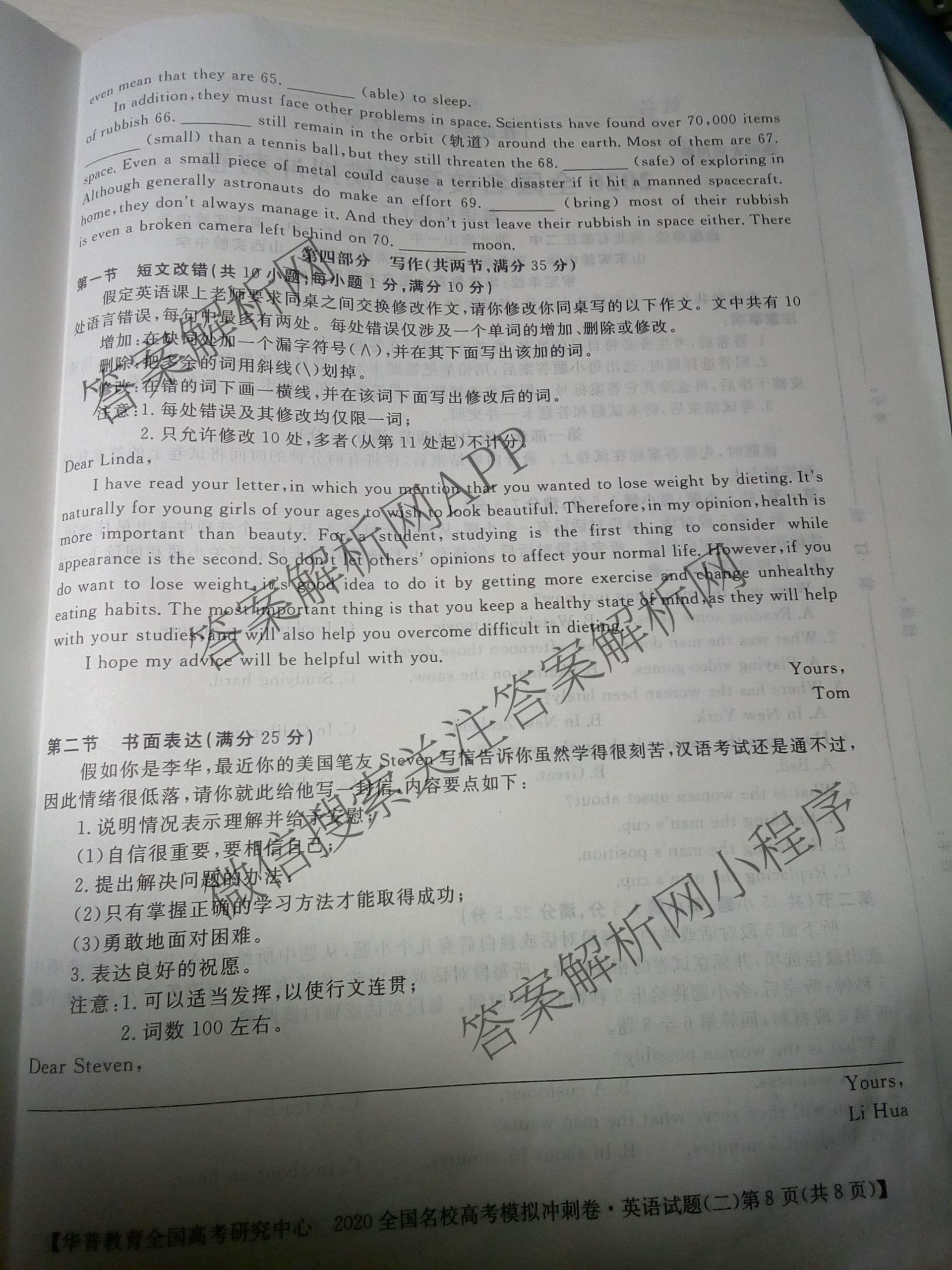 华普教育·2020全国名校高考模拟冲刺卷(二)英语试题,目前分科卷答案网已经汇总了华普教育·2020全国名校高考模拟冲刺卷(二)英语试题的各科答案和试卷,获取更多华普教育答案解析,请在关注本站。