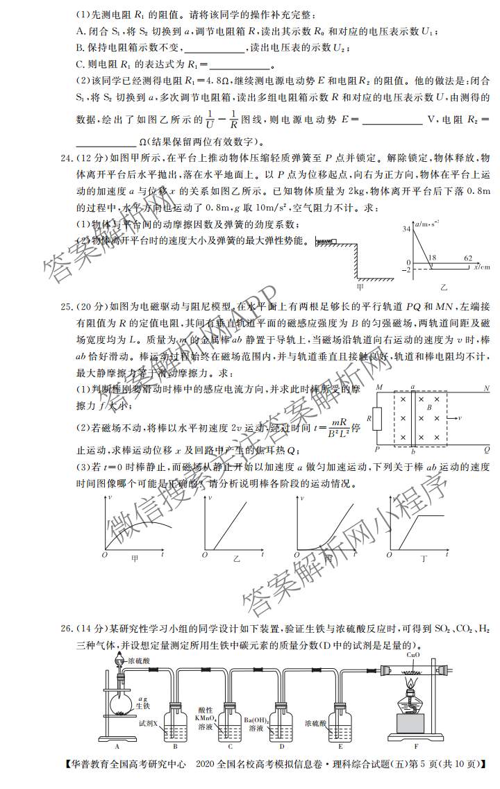 华普教育·2020全国名校高考模拟信息卷(五)理科综合试题,目前分科卷答案网已经汇总了华普教育·2020全国名校高考模拟信息卷(五)理科综合试题的各科答案和试卷,获取更多华普教育答案解析,请在关注本站。