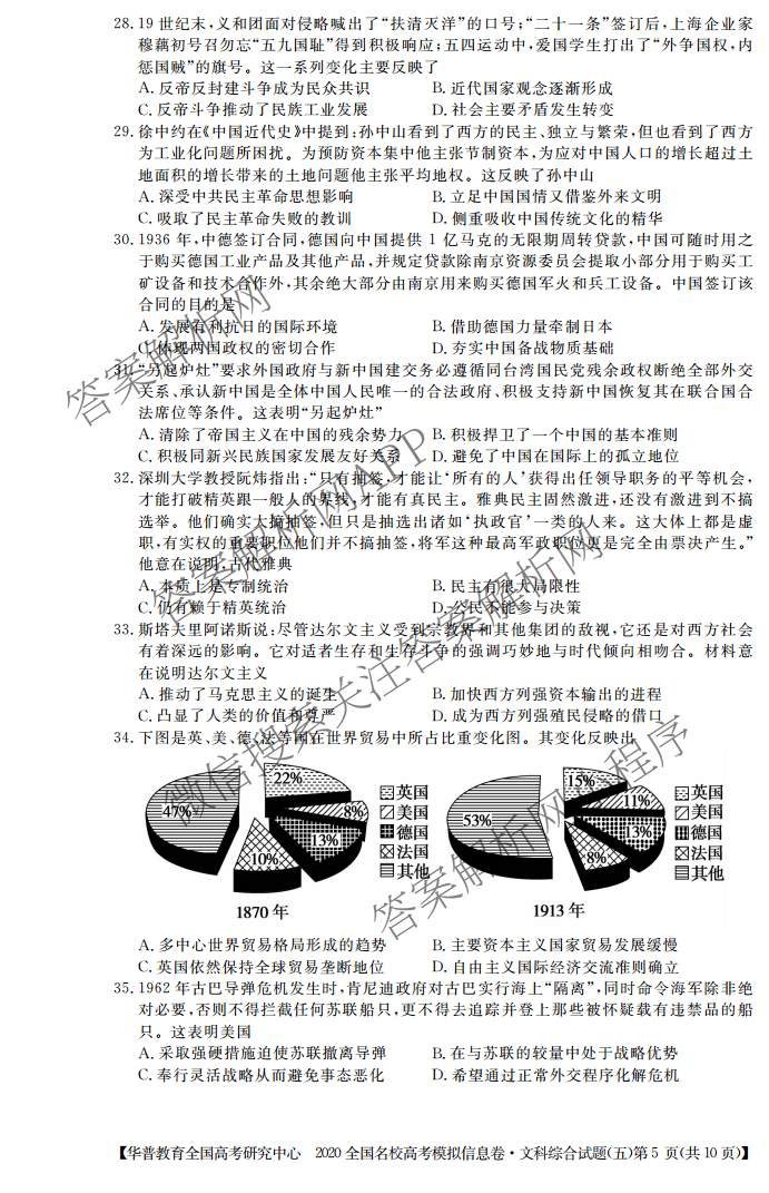 华普教育2020全国名校高考模拟信息卷(五)文科综合试题