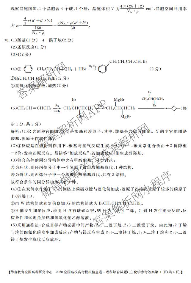 华普教育·2020全国名校高考模拟信息卷(五)理综·化学答案,目前分科卷答案网已经汇总了华普教育·2020全国名校高考模拟信息卷(五)理综·化学答案的各科答案和试卷,获取更多华普教育答案解析,请在关注本站。