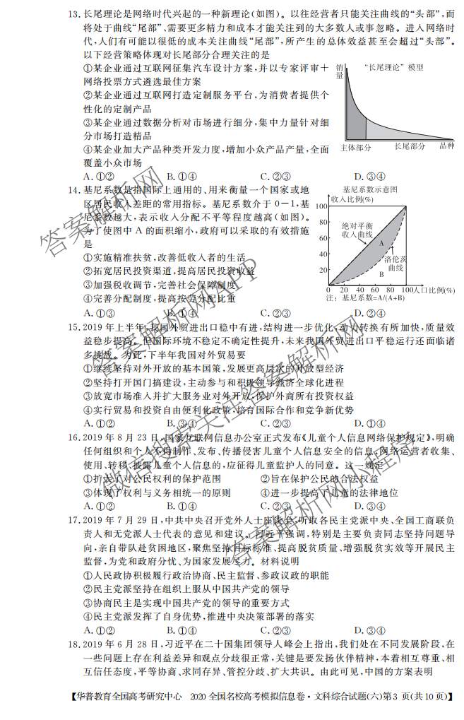 - [华普教育]2020全国名校高考模拟信息卷(六)文综政治试题