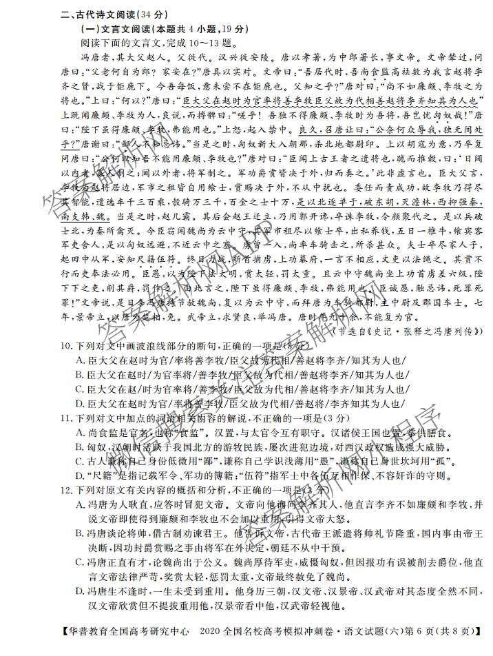 (华普教育)·2020全国名校高考模拟冲刺卷(六)语文试题
