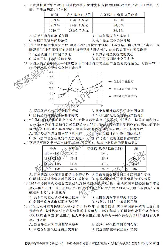 - 华普教育2020全国名校高考模拟信息卷(三)文科综合答案