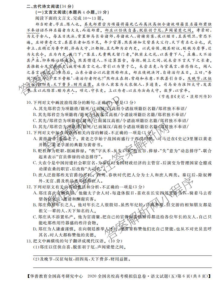 [华普教育]2020全国名校高考模拟信息卷(五)语文试题