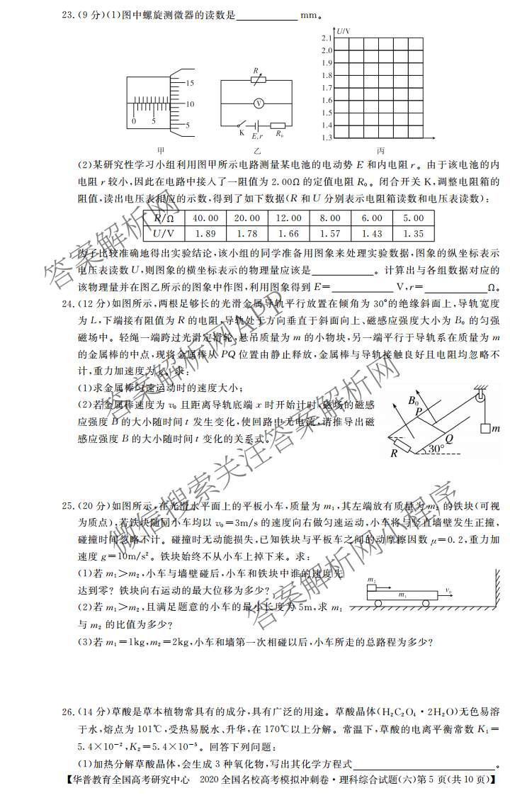- [华普教育]2020全国名校高考模拟冲刺卷(六)理科综合试题