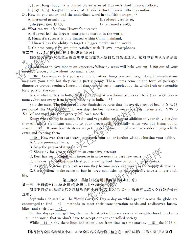 (华普教育)2020全国名校高考模拟信息卷(三)英语试题