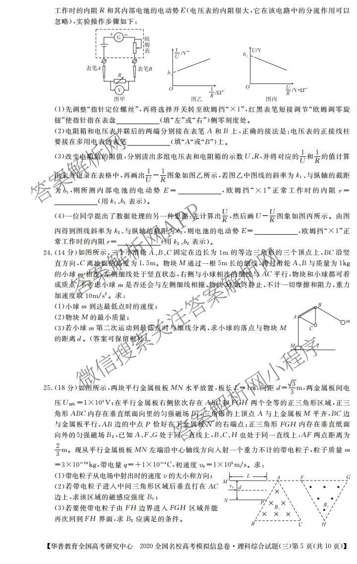 - 华普教育2020全国名校高考模拟信息卷(三)理综物理答案