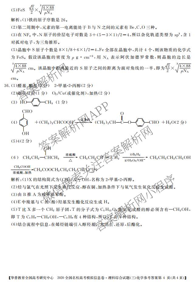 - [华普教育]2020全国名校高考模拟信息卷(三)理科综合答案
