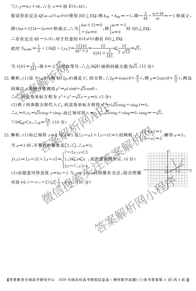 - [华普教育]2020全国名校高考模拟信息卷(三)理科数学答案