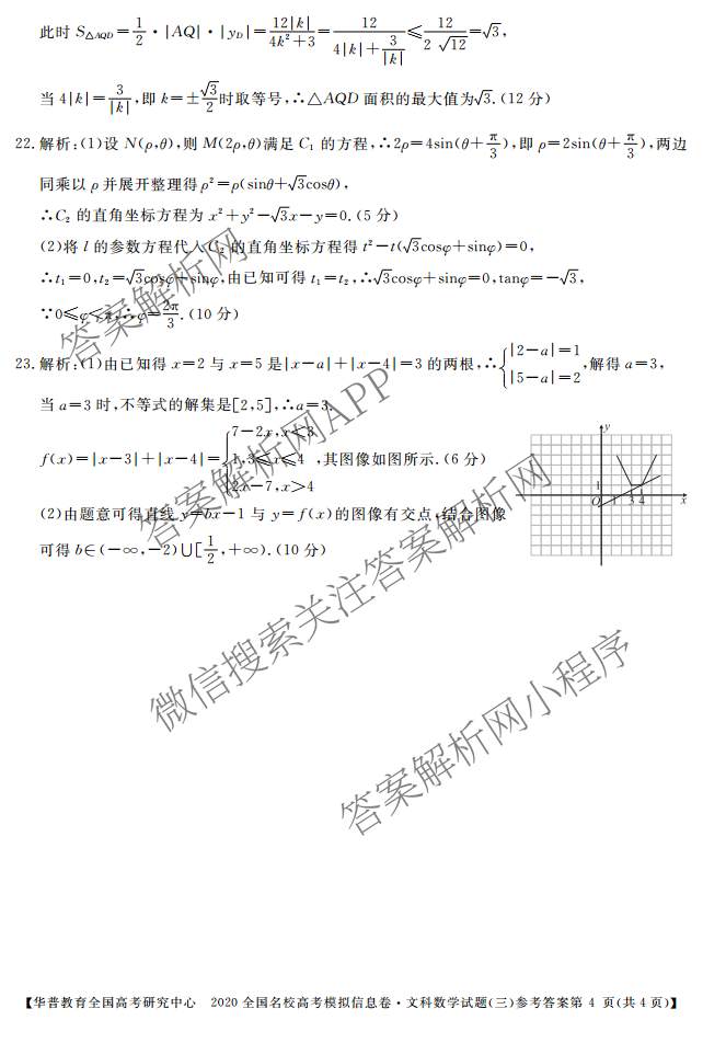 - [华普教育]·2020全国名校高考模拟信息卷(三)文科数学答案