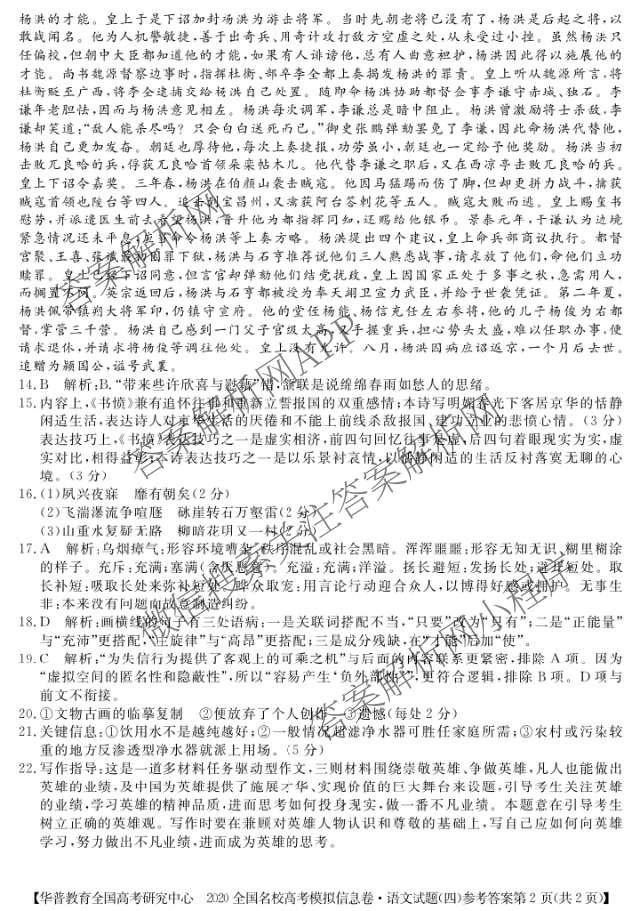 [华普教育]·2020全国名校高考模拟信息卷(四)语文答案