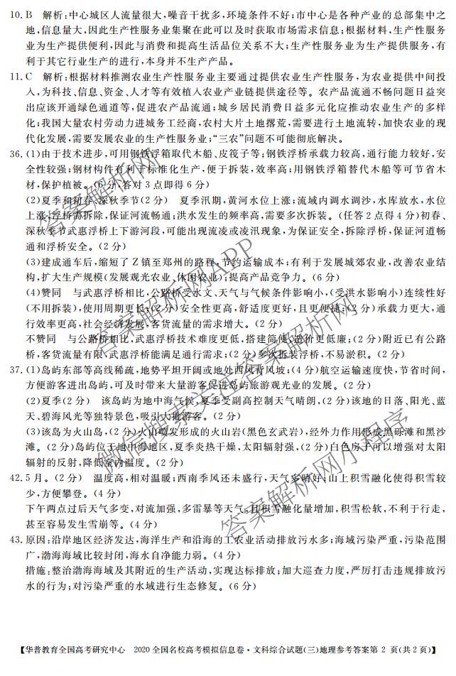 华普教育2020全国名校高考模拟信息卷(三)文综地理答案