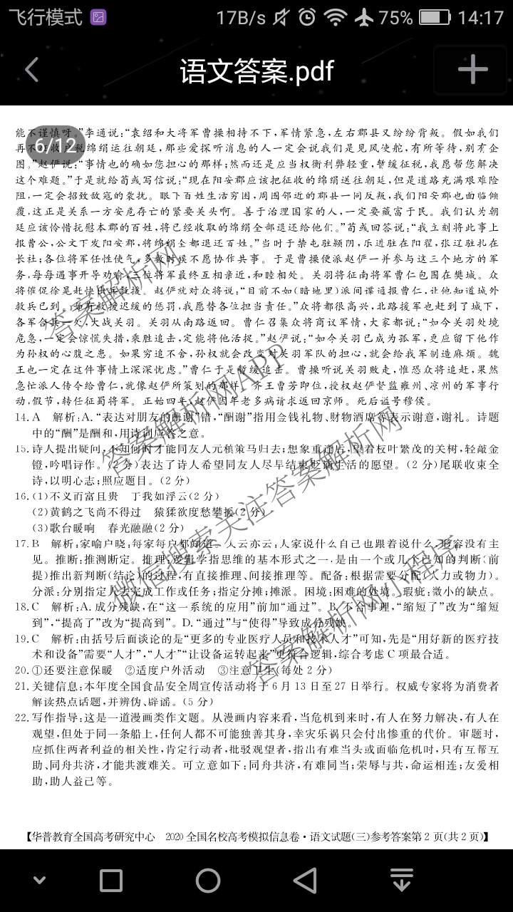 (华普教育)2020全国名校高考模拟信息卷(三)语文答案