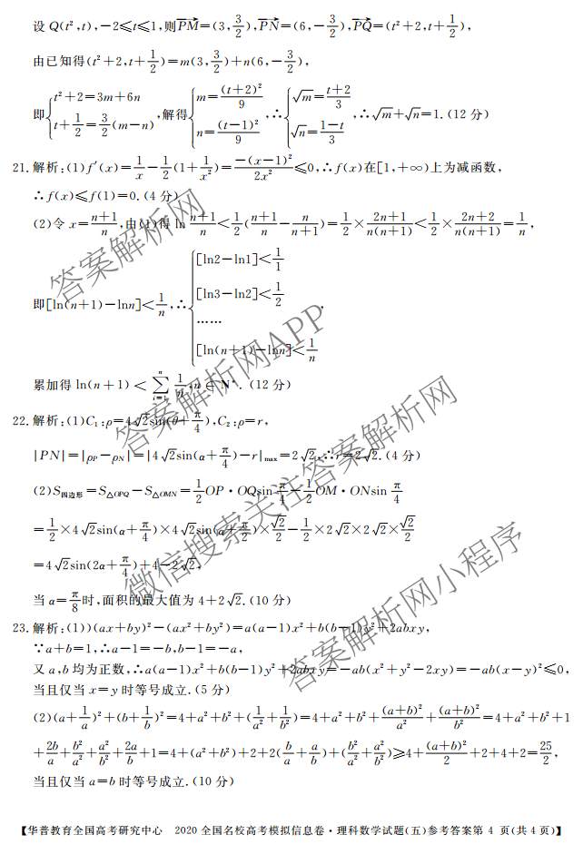 华普教育·2020全国名校高考模拟信息卷(五)理科数学答案,目前分科卷答案网已经汇总了华普教育·2020全国名校高考模拟信息卷(五)理科数学答案的各科答案和试卷,获取更多华普教育答案解析,请在关注本站。