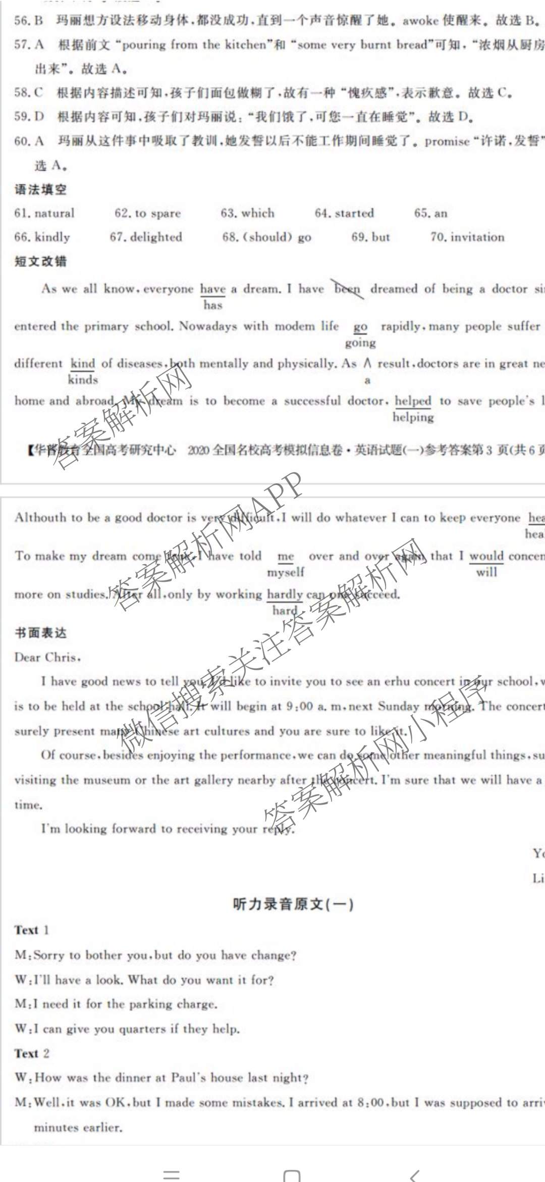 - (华普教育)·2020全国名校高考模拟信息卷(一)英语答案