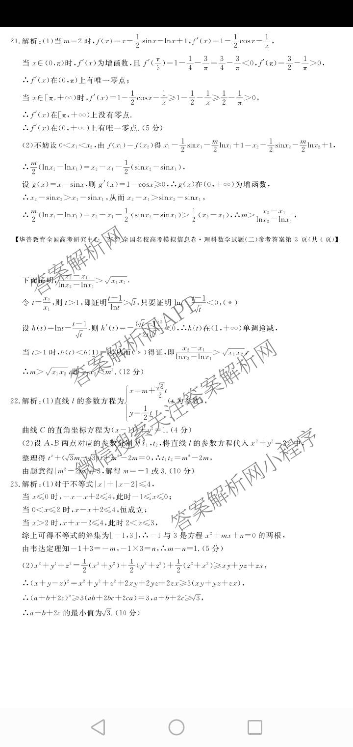 华普教育·2020全国名校高考模拟信息卷(二)理科数学答案,目前分科卷答案网已经汇总了华普教育·2020全国名校高考模拟信息卷(二)理科数学答案的各科答案和试卷,获取更多华普教育答案解析,请在关注本站。