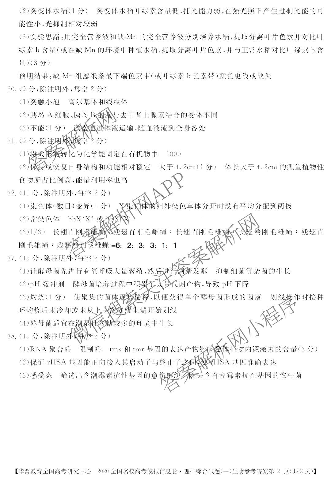 华普教育·2020全国名校高考模拟信息卷(一)理综·生物答案,目前分科卷答案网已经汇总了华普教育·2020全国名校高考模拟信息卷(一)理综·生物答案的各科答案和试卷,获取更多华普教育答案解析,请在关注本站。