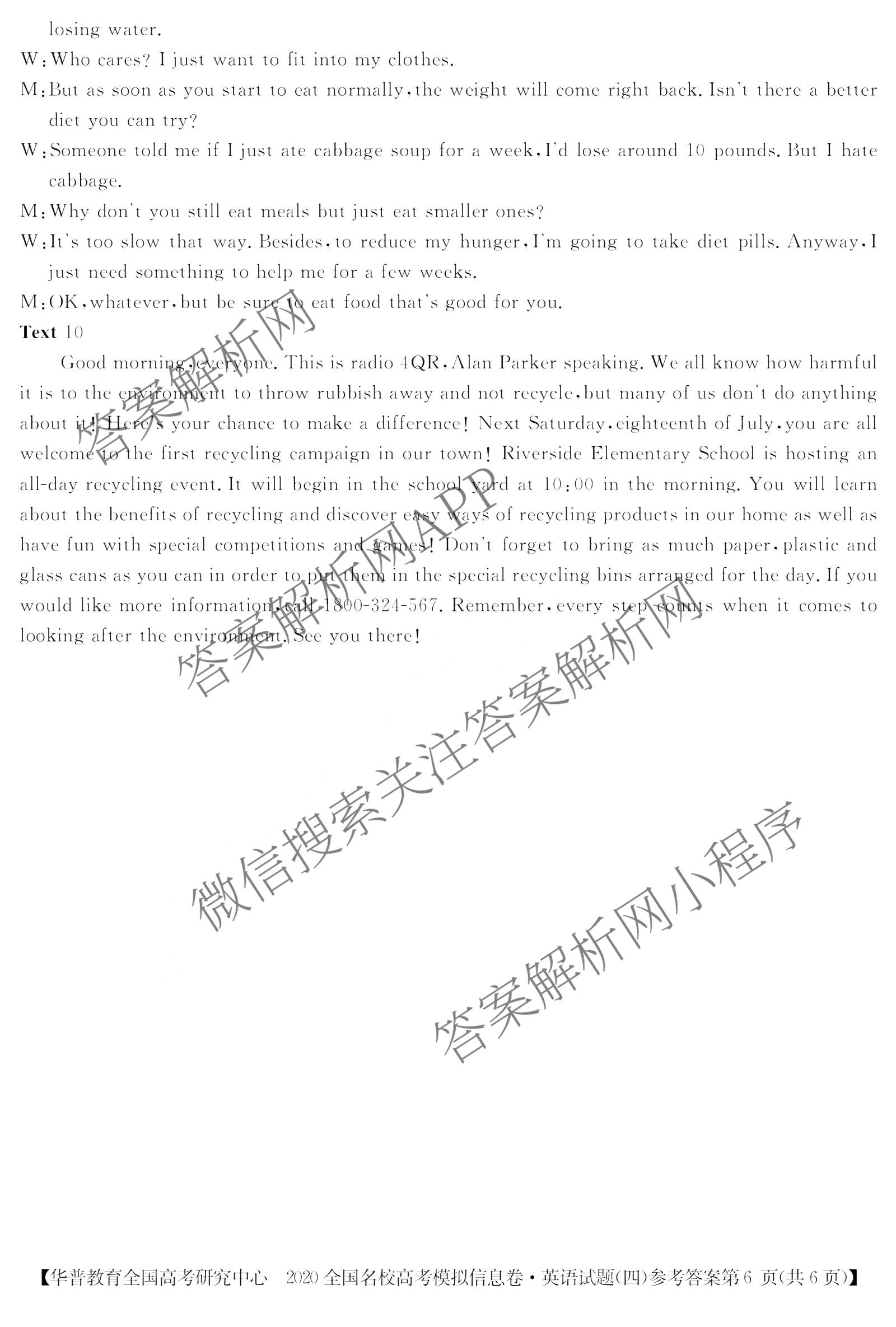 [华普教育]2020全国名校高考模拟信息卷(四)英语答案