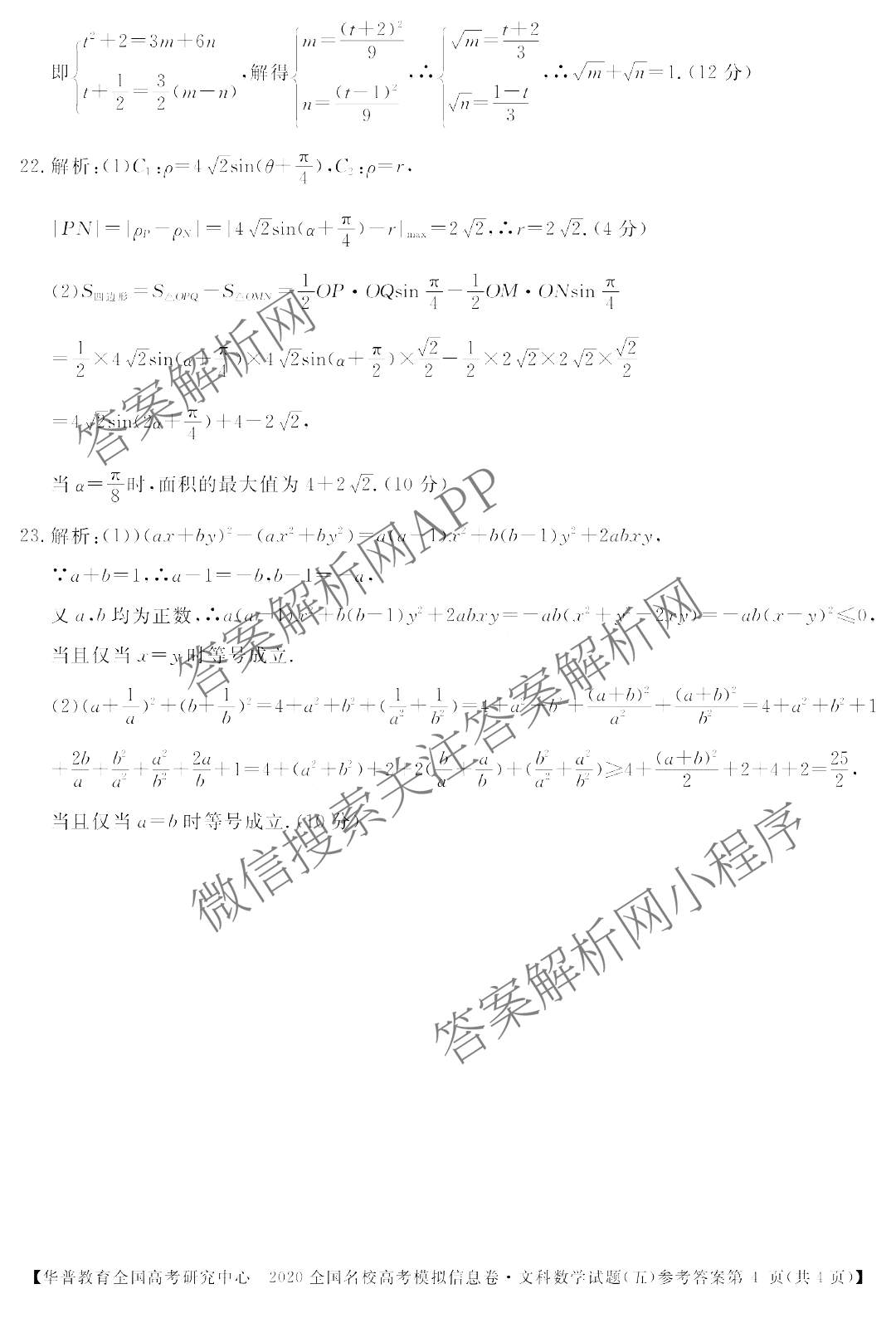 华普教育·2020全国名校高考模拟信息卷(五)文科数学答案,目前分科卷答案网已经汇总了华普教育·2020全国名校高考模拟信息卷(五)文科数学答案的各科答案和试卷,获取更多华普教育答案解析,请在关注本站。