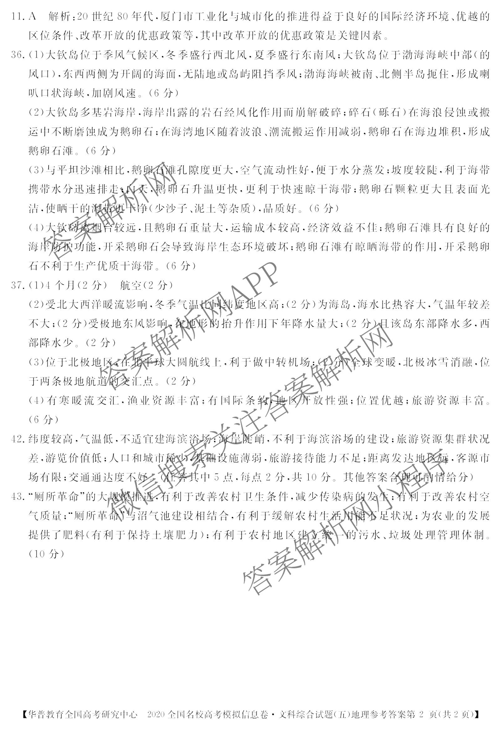 - 华普教育2020全国名校高考模拟信息卷(五)文科综合答案