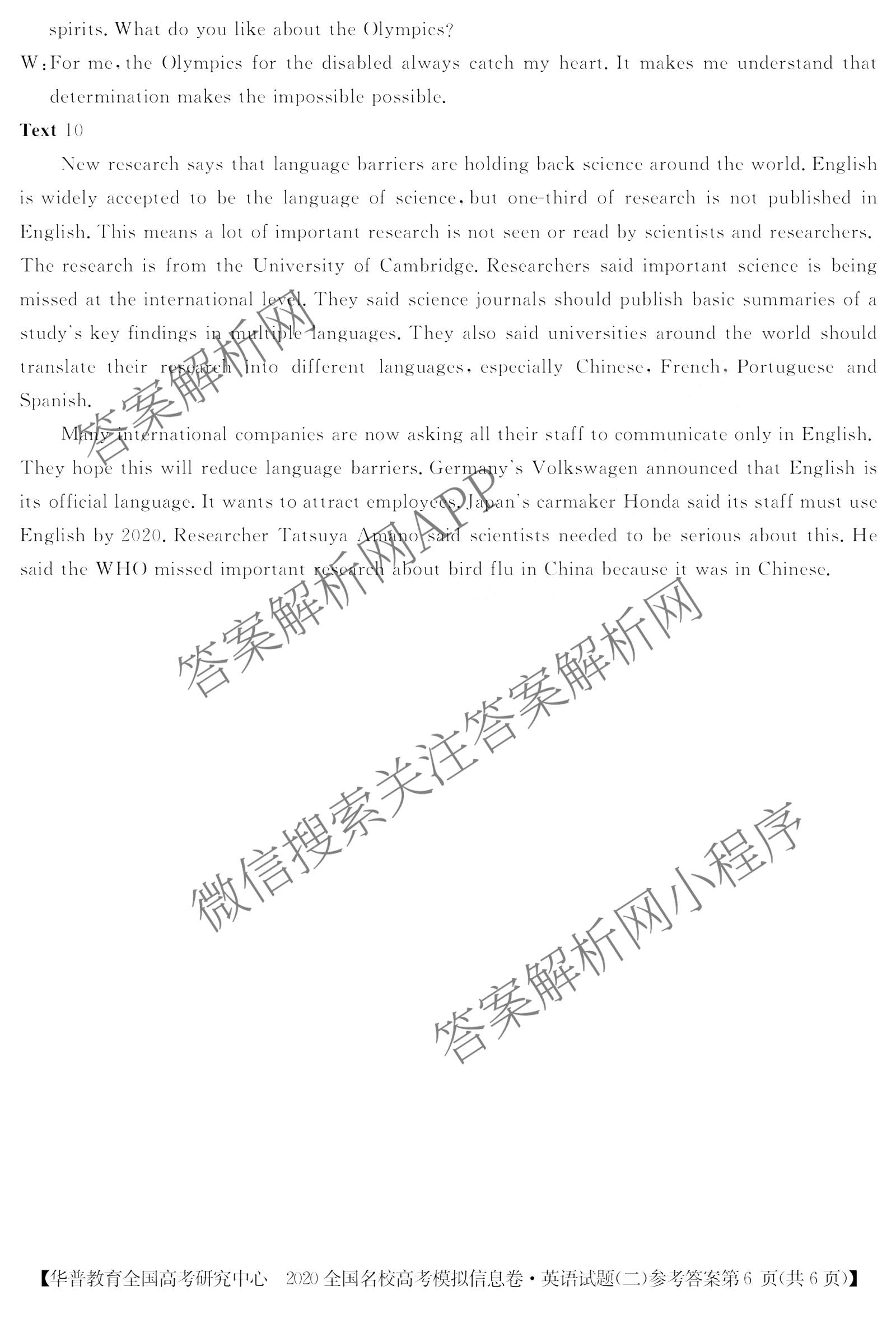 华普教育2020全国名校高考模拟信息卷(二)英语答案