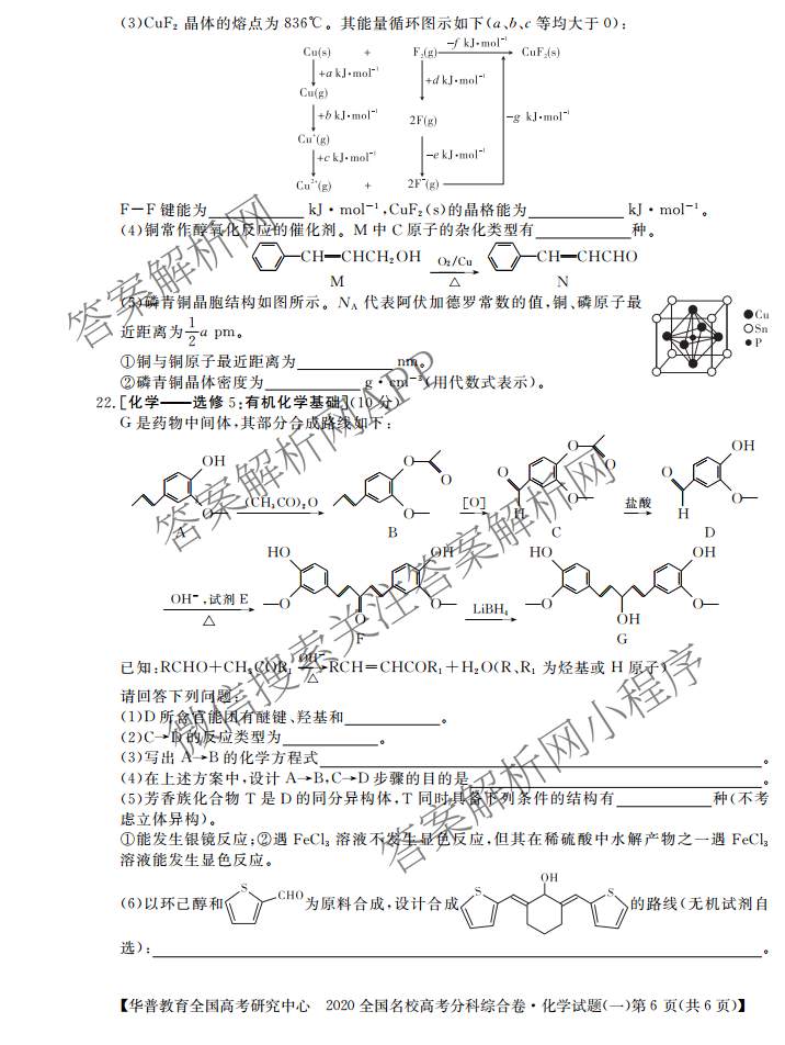 华普教育·2020全国名校高考分科综合卷(一)化学试题,目前分科卷答案网已经汇总了华普教育·2020全国名校高考分科综合卷(一)化学试题的各科答案和试卷,获取更多华普教育答案解析,请在关注本站。