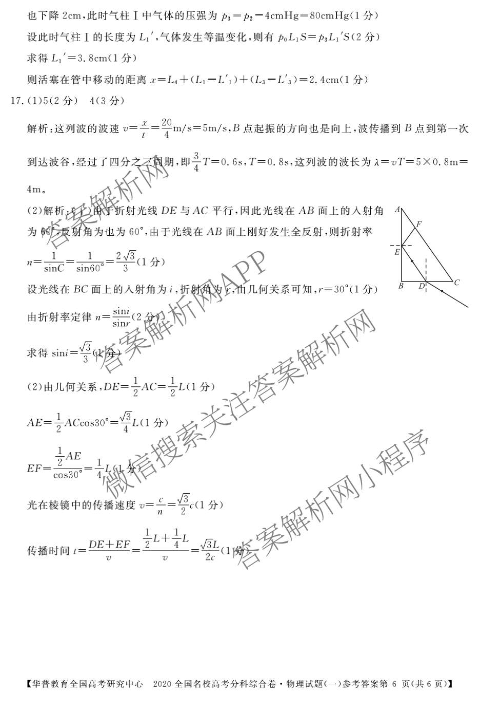华普教育2020全国名校高考分科综合卷(一)物理答案
