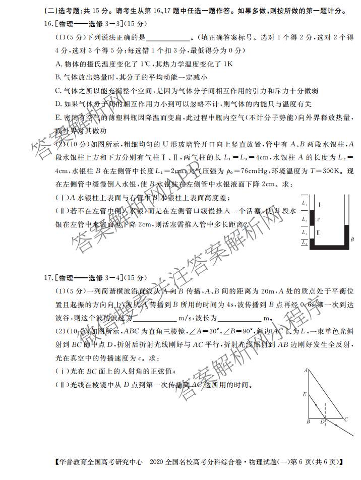 华普教育·2020全国名校高考分科综合卷(一)物理试题,目前分科卷答案网已经汇总了华普教育·2020全国名校高考分科综合卷(一)物理试题的各科答案和试卷,获取更多华普教育答案解析,请在关注本站。