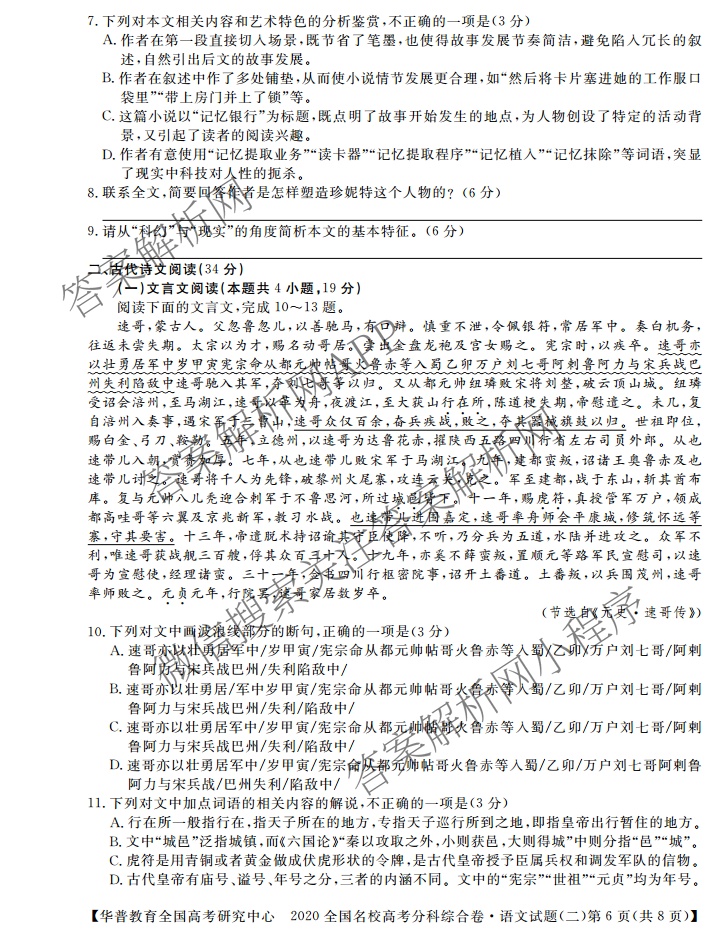 华普教育2020全国名校高考分科综合卷(二)语文试题