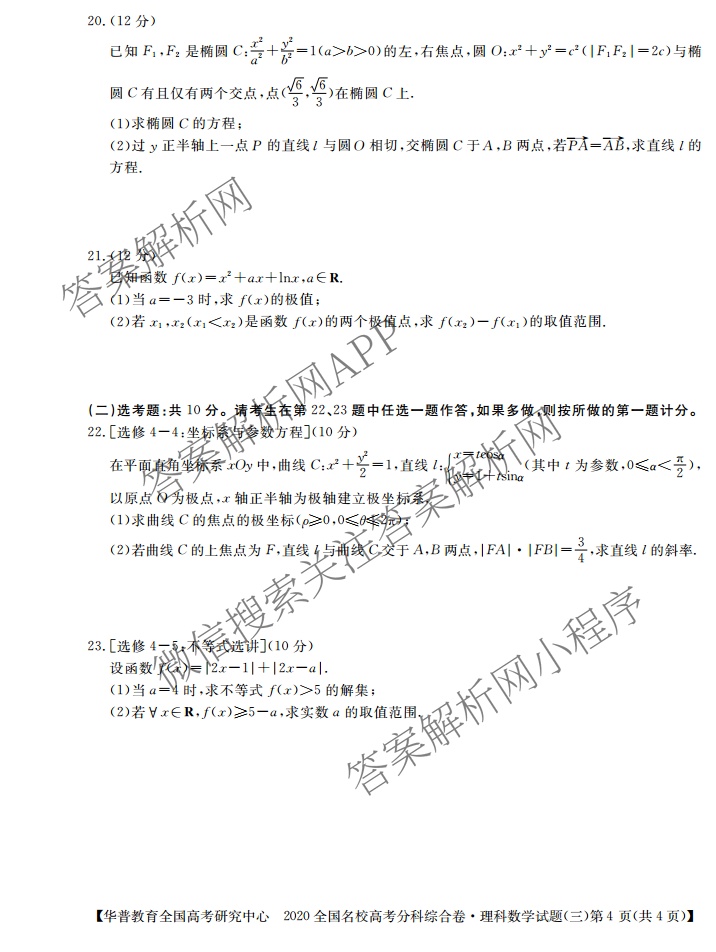 华普教育·2020全国名校高考分科综合卷(三)理科数学试题,目前分科卷答案网已经汇总了华普教育·2020全国名校高考分科综合卷(三)理科数学试题的各科答案和试卷,获取更多华普教育答案解析,请在关注本站。