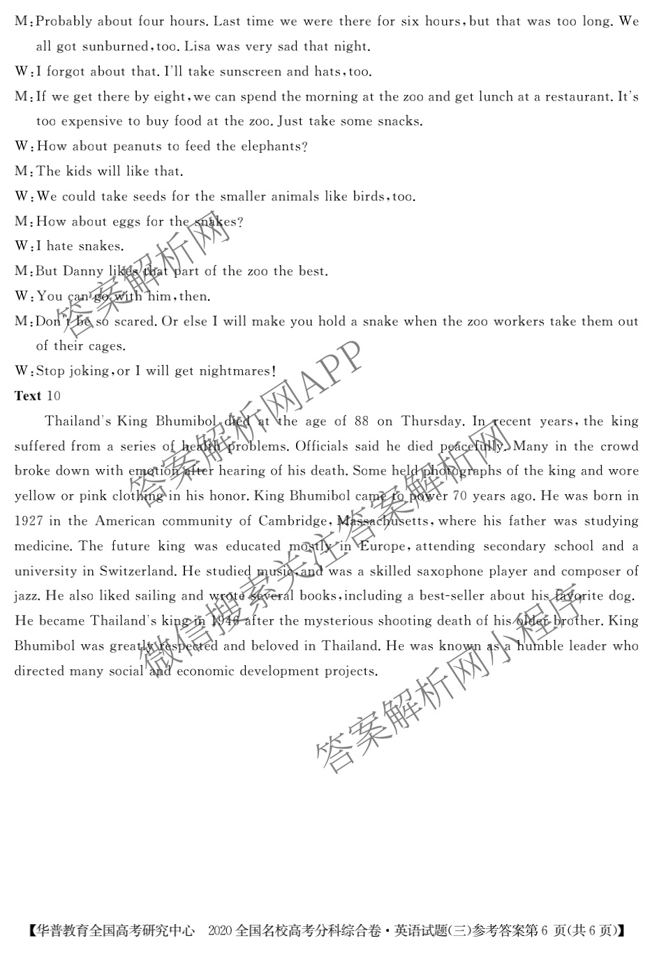 华普教育2020全国名校高考分科综合卷(三)英语答案