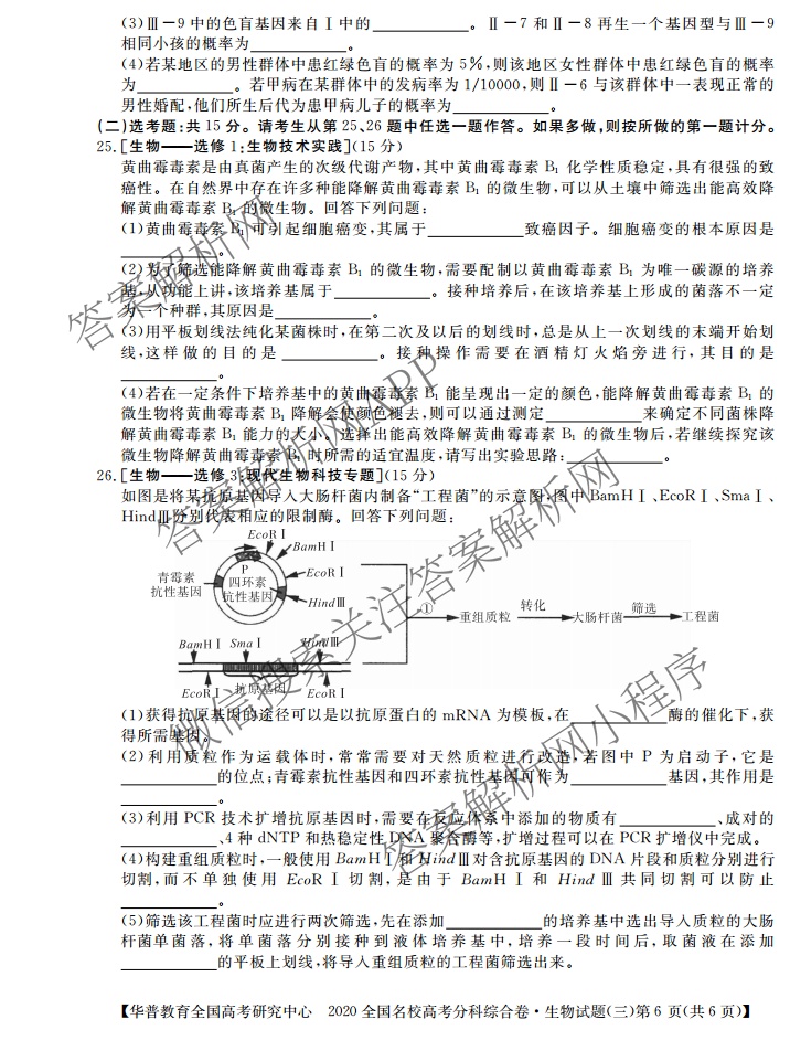 华普教育·2020全国名校高考分科综合卷(三)生物试题,目前分科卷答案网已经汇总了华普教育·2020全国名校高考分科综合卷(三)生物试题的各科答案和试卷,获取更多华普教育答案解析,请在关注本站。